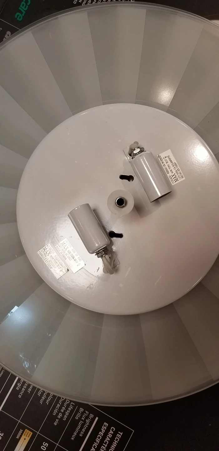 17 inches in diameter. Takes 2 bulbs. 3 fixtures available.