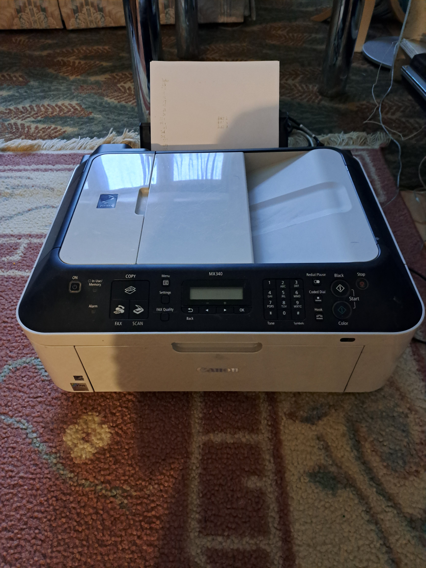 like new Canon Pixma all in one inkjet printer. black ink still ok to print. will need color cartridge for color. pickup mccowan and denison in Markham.comes with power cord but no manual .
