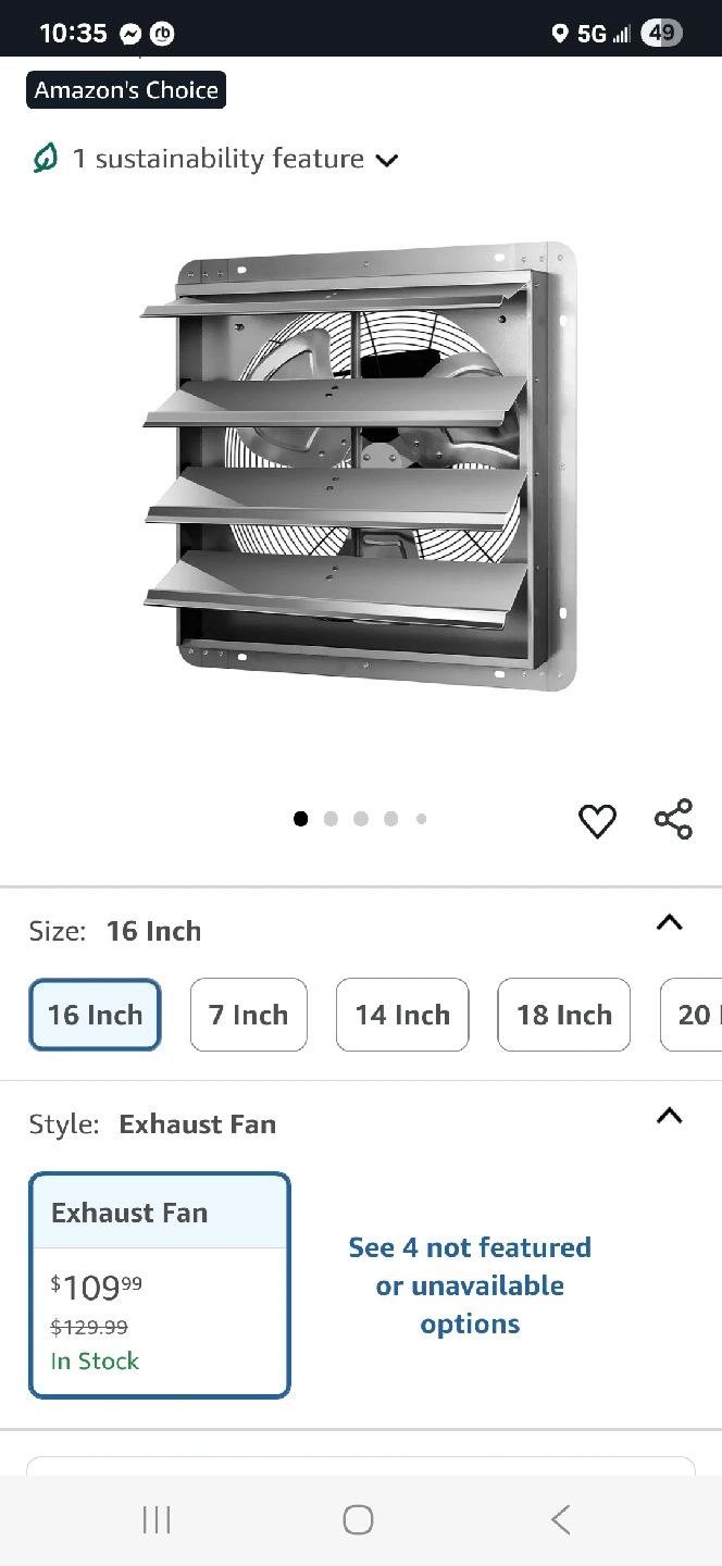 Selling a 16 inch exhaust fan! It's an Amazon's Choice product and has a sustainability feature. Originally listed for $109.99