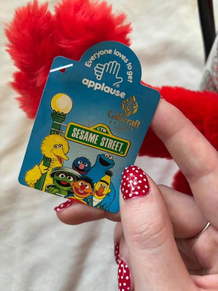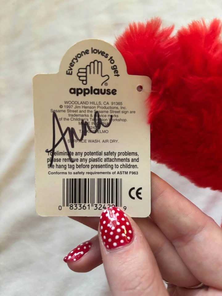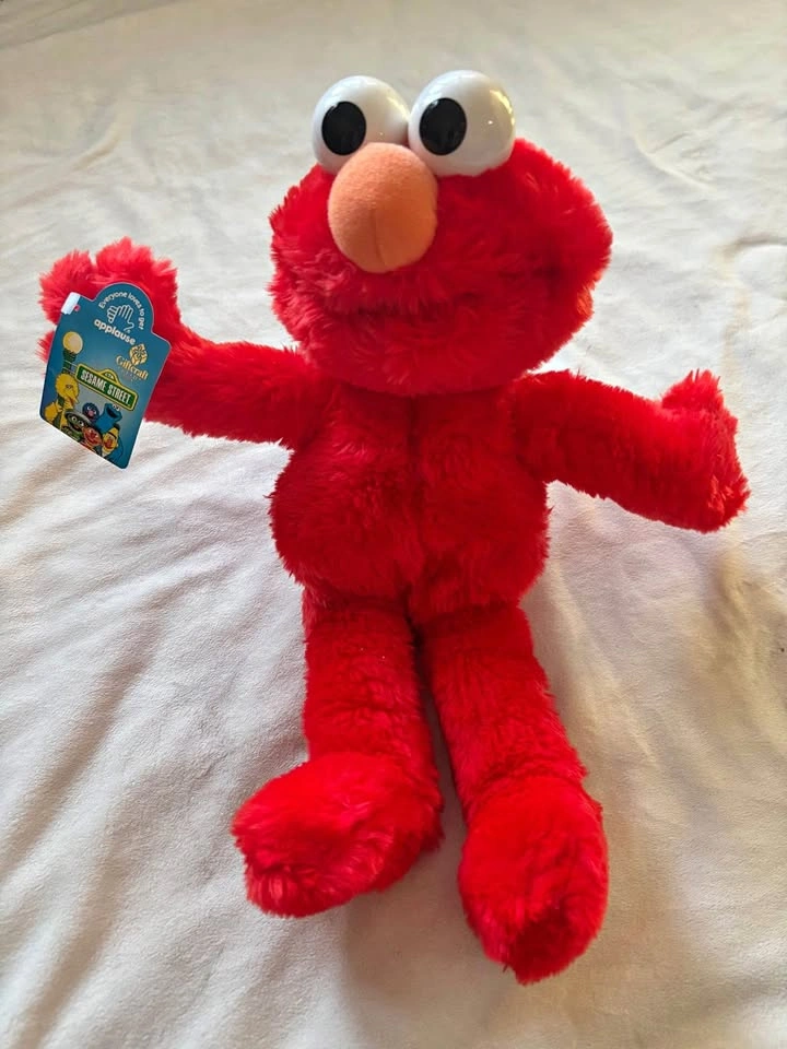 16” Talking Elmo 1997. See video for phrases. Tag still attached, Anna written on tag.