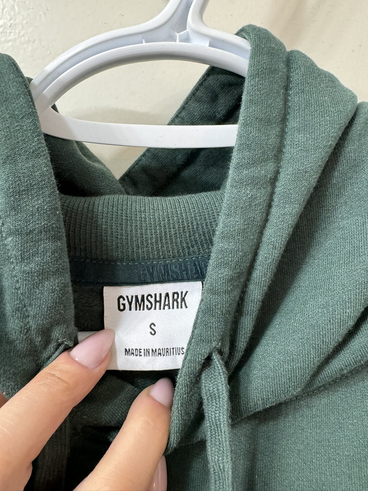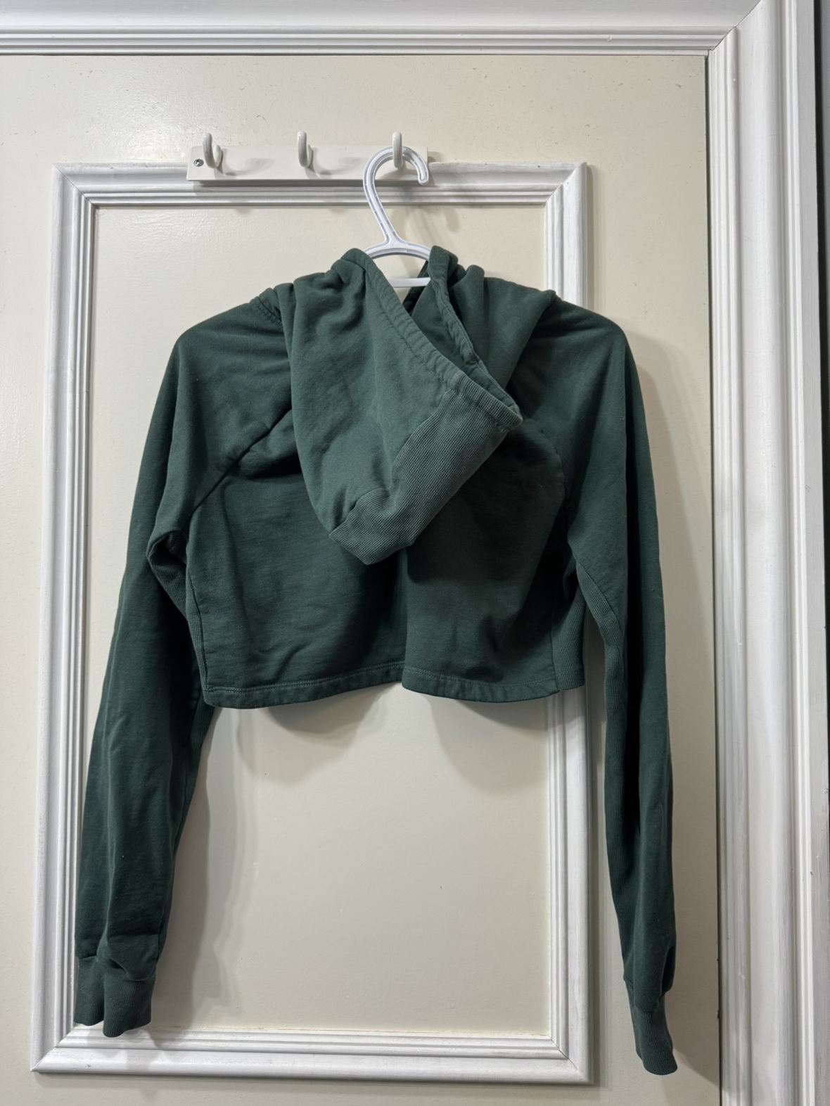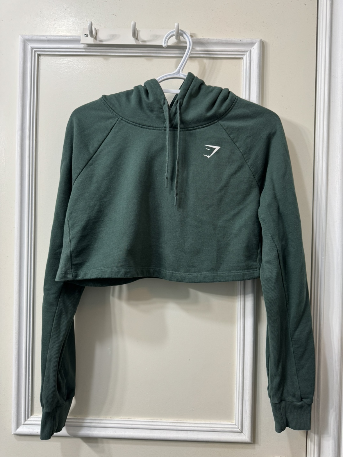 Gymshark Cropped Hoodie in Forest Green - Size Small (S) 69% Cotton; 31% Polyester Lightly worn - excellent condition - Retail price goes for $50 Smoke-free, Pest-free, and Pet free home. Cash and asap pickup only, please. Stockyards (Keele/St. Clair Ave. W.) Area, Yorkdale Area