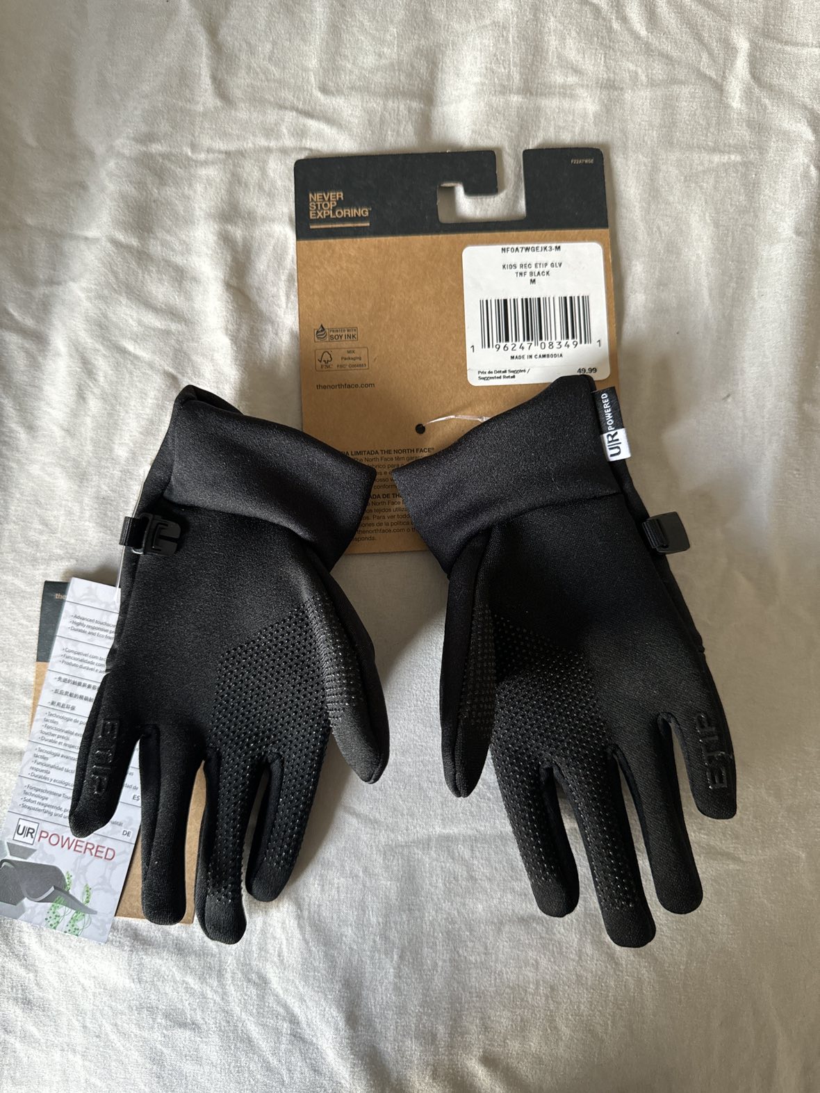 The North Face (TNF) - Kids’ Recycled ETip Glove - Black - Size Medium (Brand New with Tags attached) ETip functionality works with touchscreen devices (U|R Powered) ETip function on index finger Warmth Level - Warm Smoke-free, Pest-free, and Pet free home. Cash and asap pickup only, please. Stockyards (Keele/St. Clair) Area, Yorkdale Area