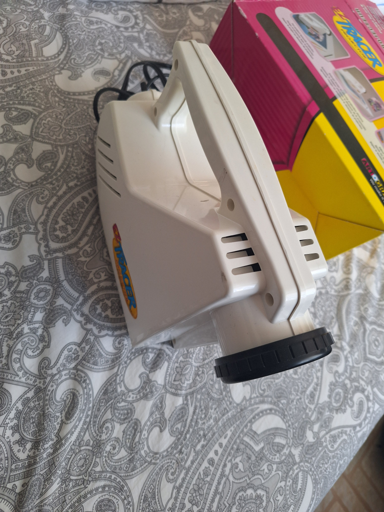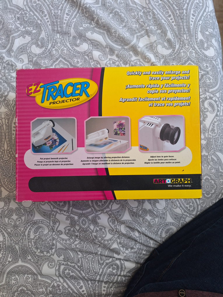 you project an opaque image about 2x 3 inches on the wall and trace it. Good for school projects