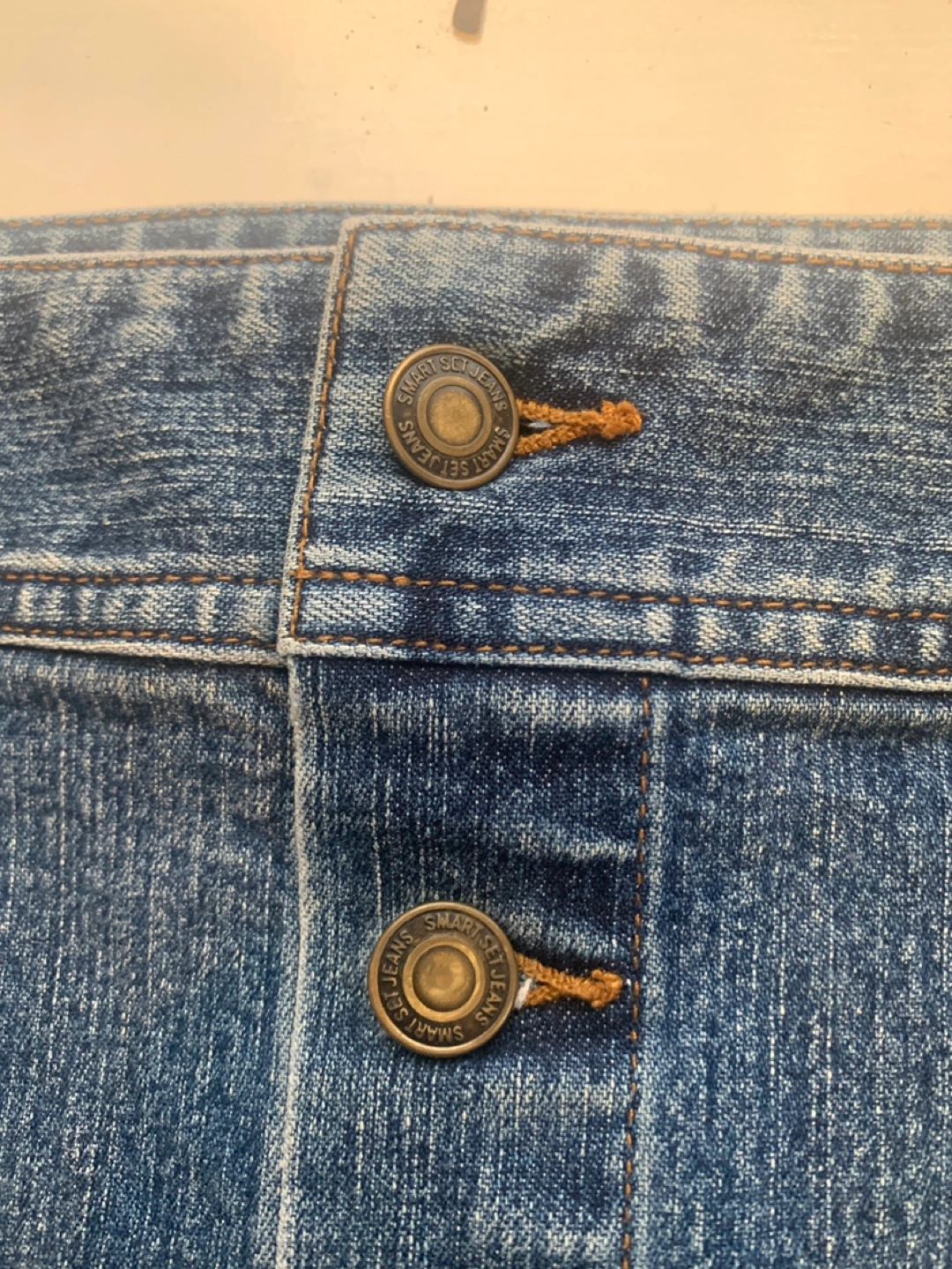 Smart set Jean mini skirt Says size 7 but I’d say it’s a small/medium Measurements in photos