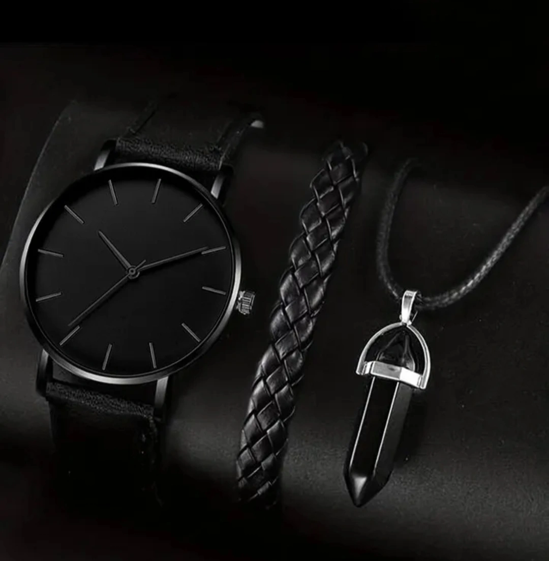 3 Pc's Men's Simple Round Belt Quartz Watch+Woven Bracelet+ Necklace Combination Set It's Brand new in intact packet Pick up near SE Marine Drive or Delivery Possible for $5.00