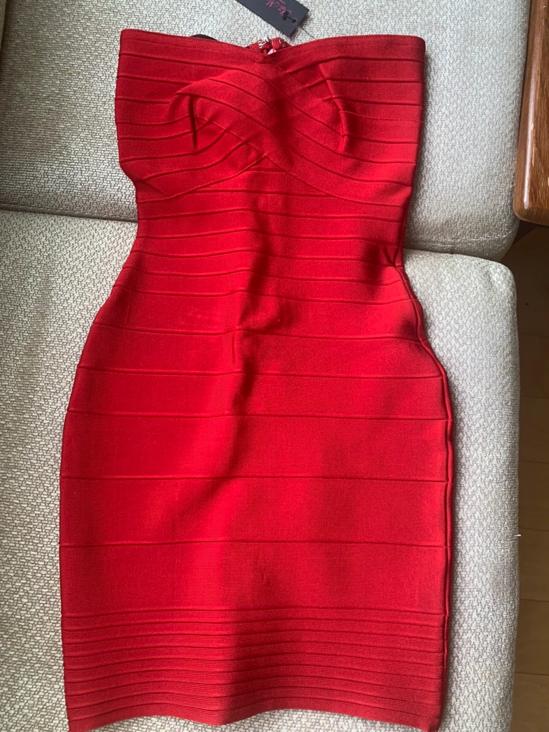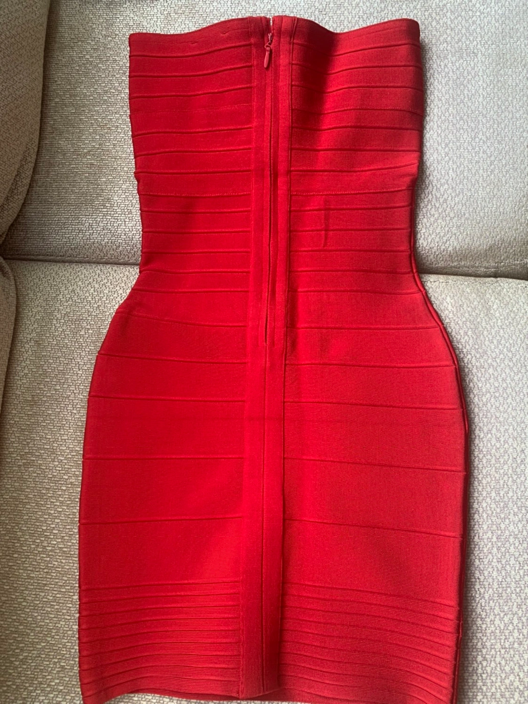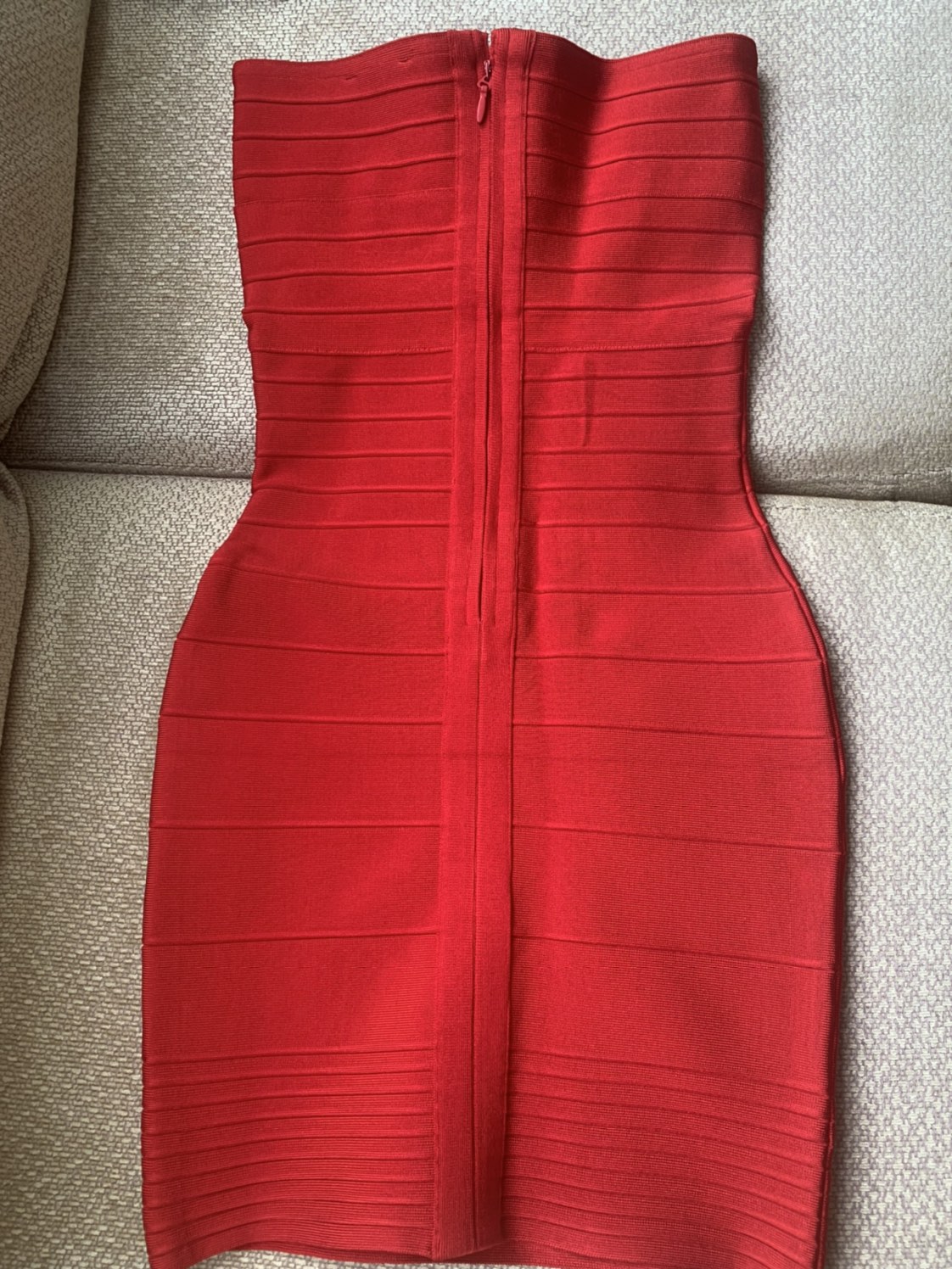 Brand new never been worn. Poppy red thick bandage style dress. Zip up back and closure. Anti slip silicone strip around neckline. Form fitting, mini. Very good quality. Smoke and pet free home.