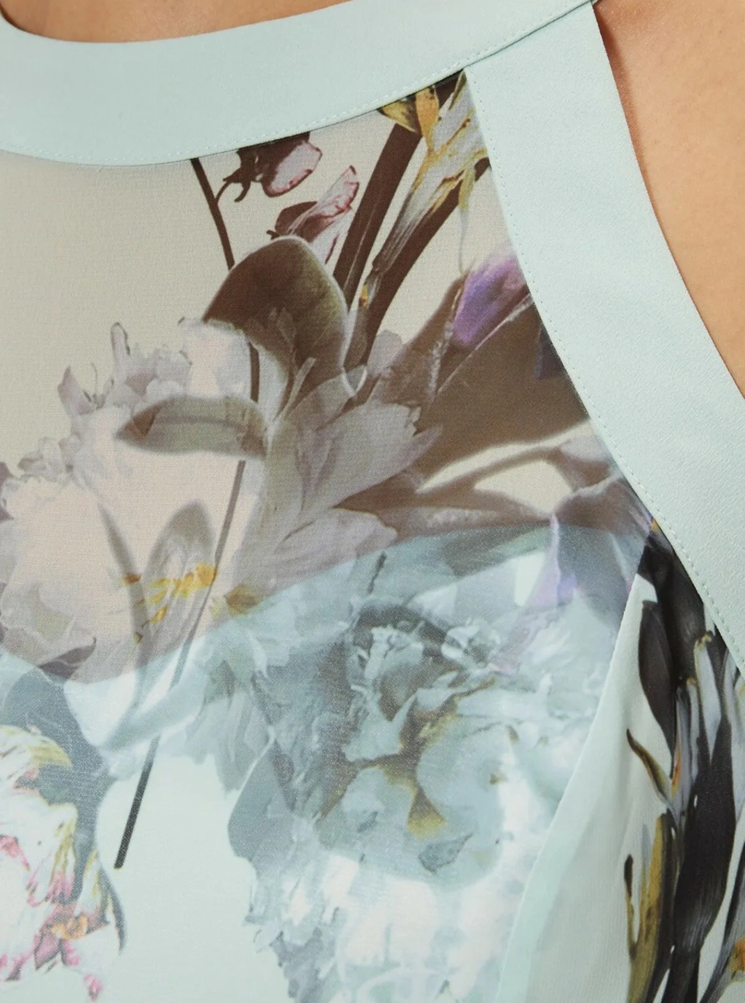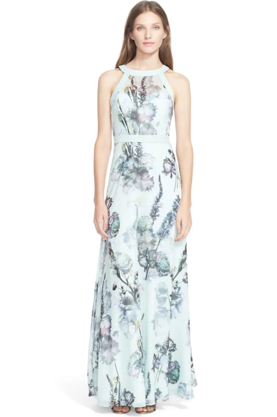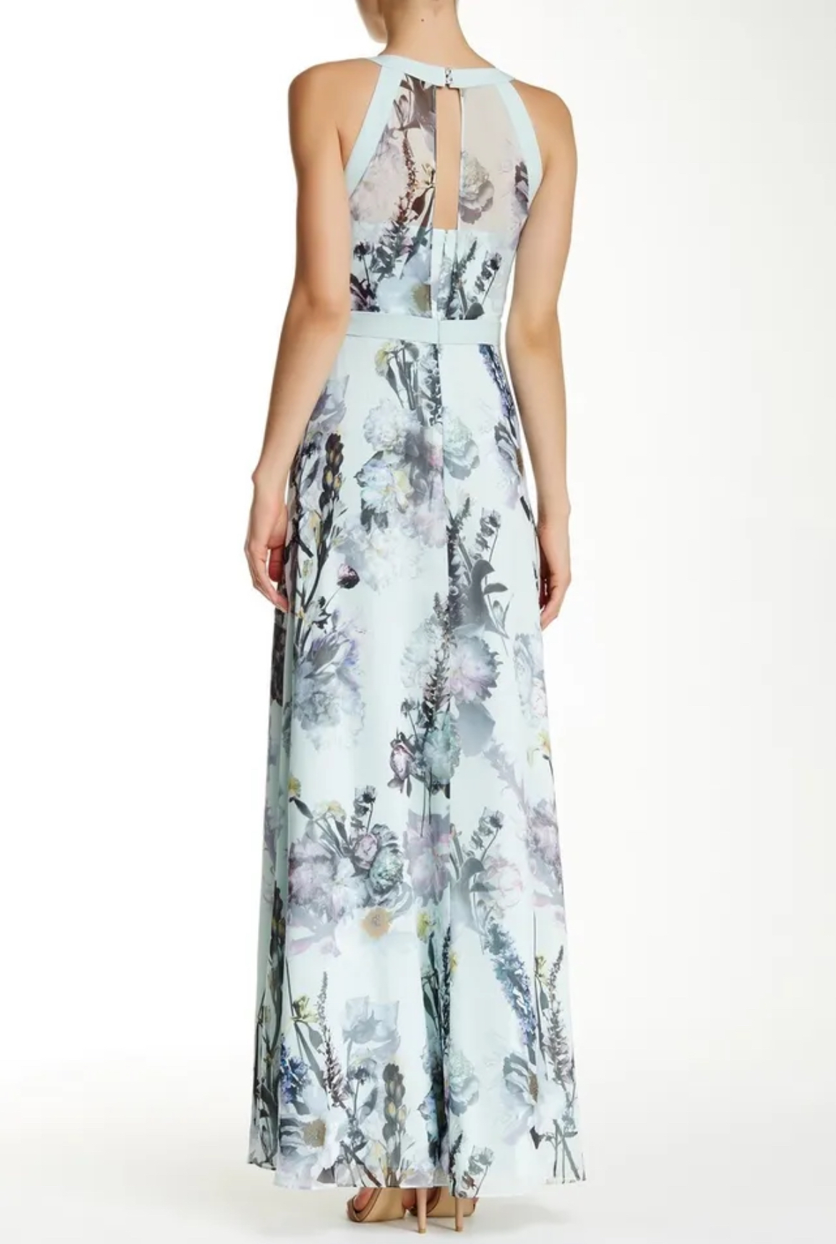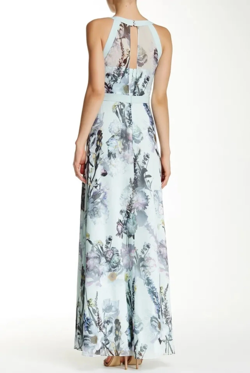 Ted Baker Mint Floral Floor length dress in size 2 (or US size 6) Lovely maxi dress in pale mint green with Ted's gorgeous ‘Torchlit Floral' print of luminous blooms. Featuring floaty chiffon overlay, halter neckline, flattering inner sweetheart bodice with light boning (so no bra required), structured waistband for a nipped-in shape, hidden back zip closure, and a silky inner lining. Perfect for cocktail, formal, prom, party, races, wedding, and evening occasions, and would make an ideal bridesmaid dress (that could be worn more than once!). **Pickup in Etobicoke near Lakeshore & Parklawn. Shipping options available**