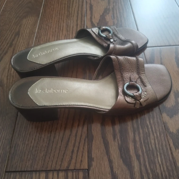 Liz Claiborne brown heeled slides, size 7.5