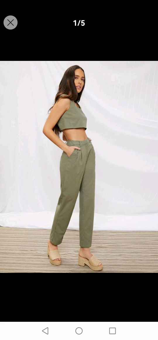 Trendy olive green crop tank top and pants set. Size XS. Please look at my other listings π