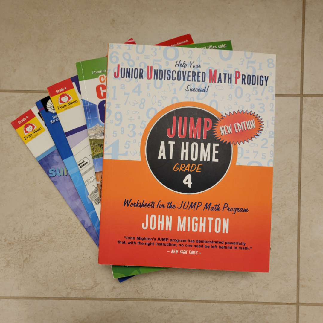 Five Grade 4 Books for Math and Language -Great for homework practice, homeschooling, or tutoring -Originally purchased at around $20+ each. Total value: $100+ -Reason for selling: I moved from teaching the older grades to a younger grade, so I no longer need them -Pickup at Bayview and Sheppard only
