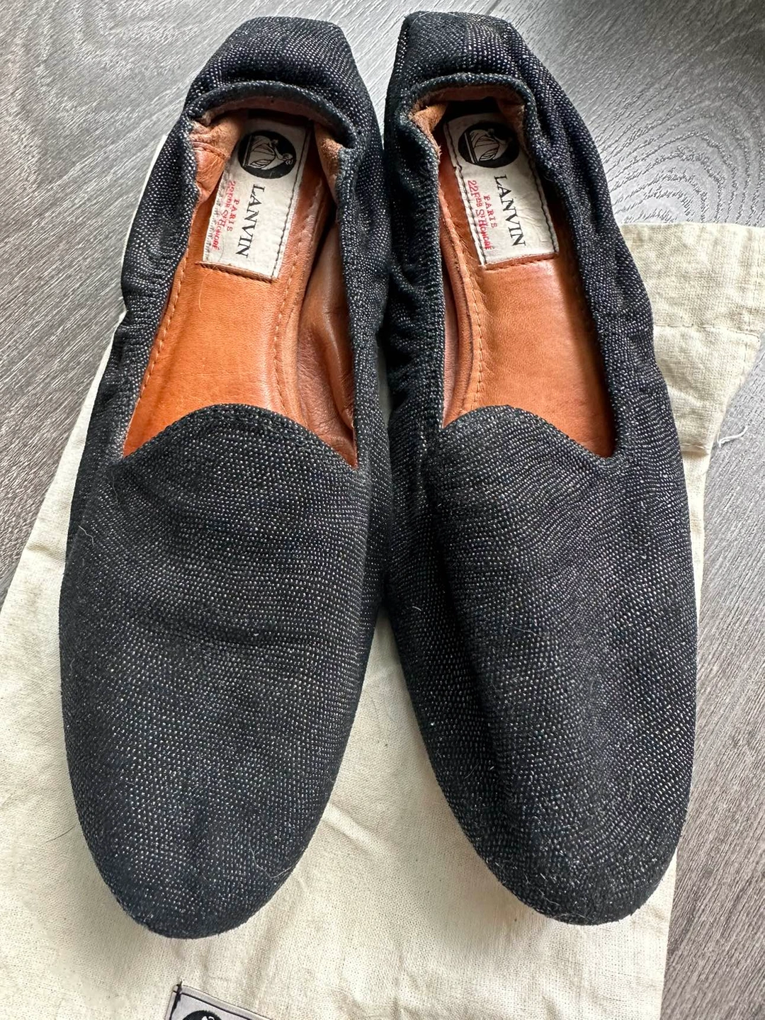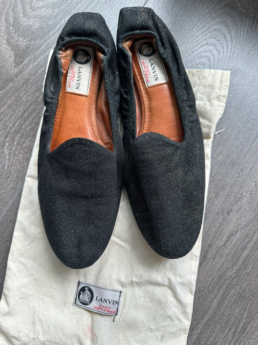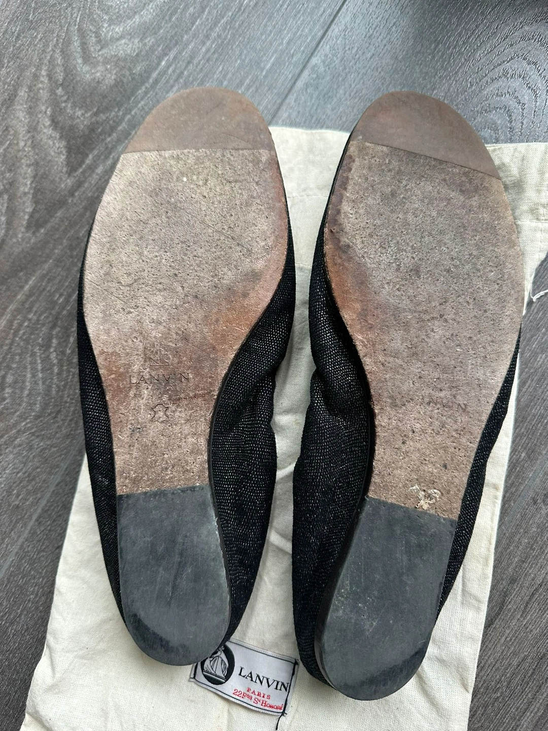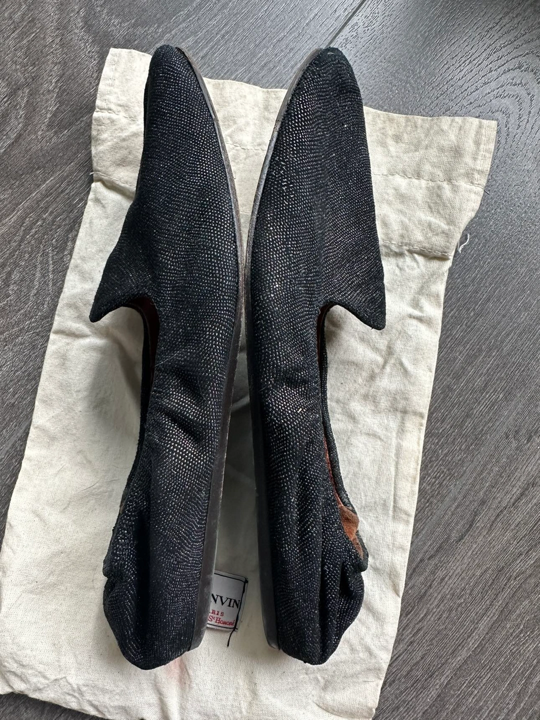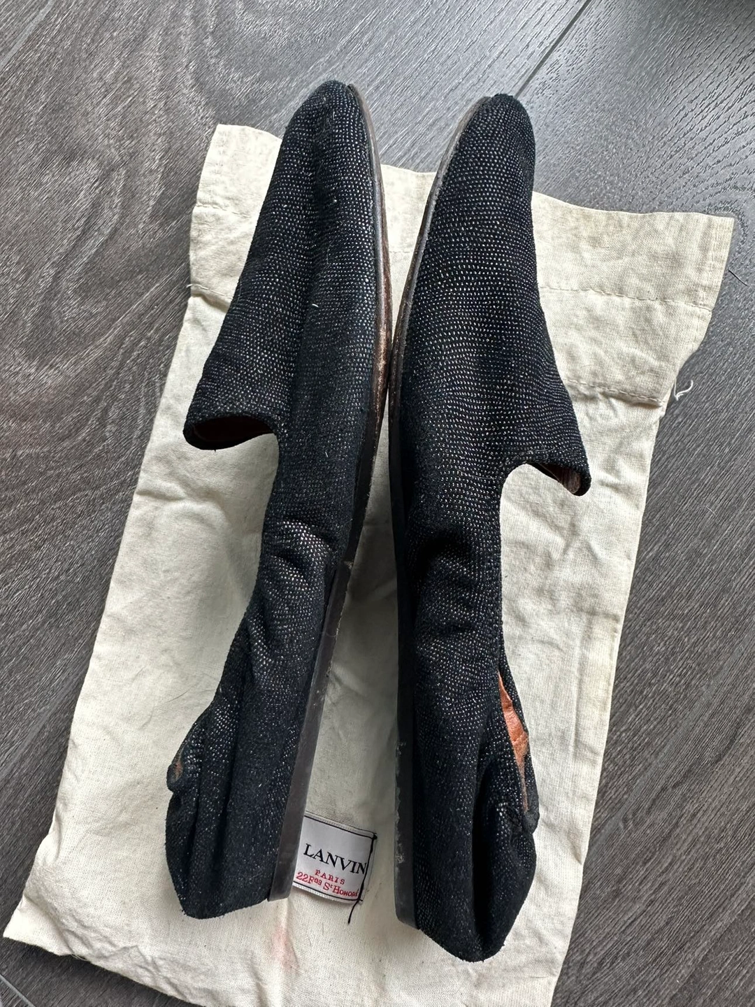 Lanvin Black Metallic Slip on loafer flats fits 39-39.5 Good pre owned condition Comes with dust bag