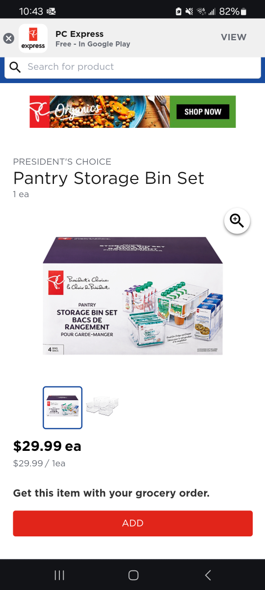 Show allPresident's Choice Pantry Storage Bin Set - 4 Bins