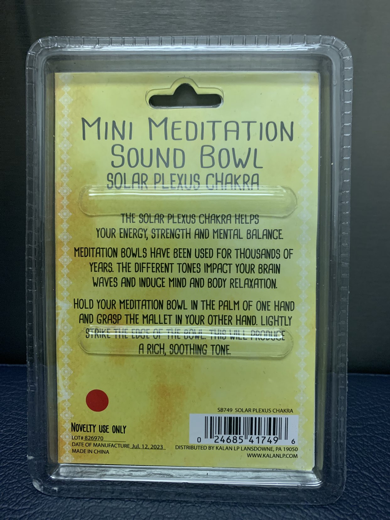 This tiny bowl is 5.5 cm at it’s widest point. It’s brand new and in a sealed package. I bought another one and can tell you the following: . It’s absolutely adorable and would great as a decoration. . I think it would make a cute little gift for the right person and make them smile. . It says on the back of the package that’s it a novelty item. I agree that it’s for decorative purposes only and I wish this produced “ a rich soothing sound” like the back of this box suggests. I find it doesn’t make much of a sound. Hope this was helpful! Have a great day!