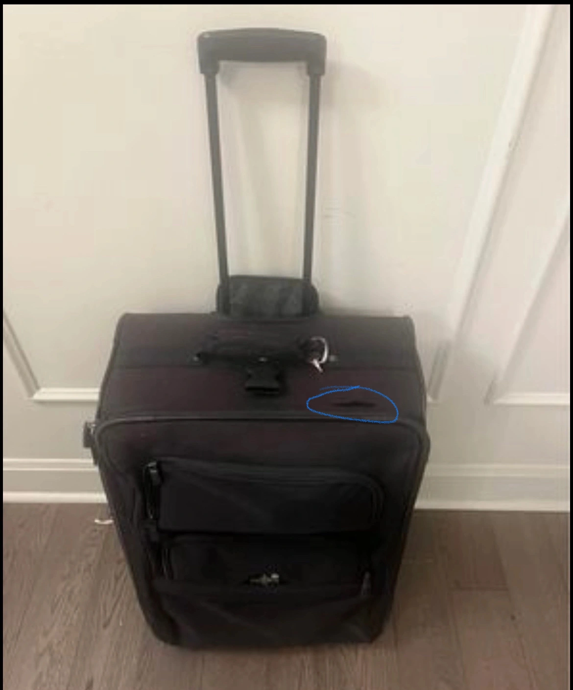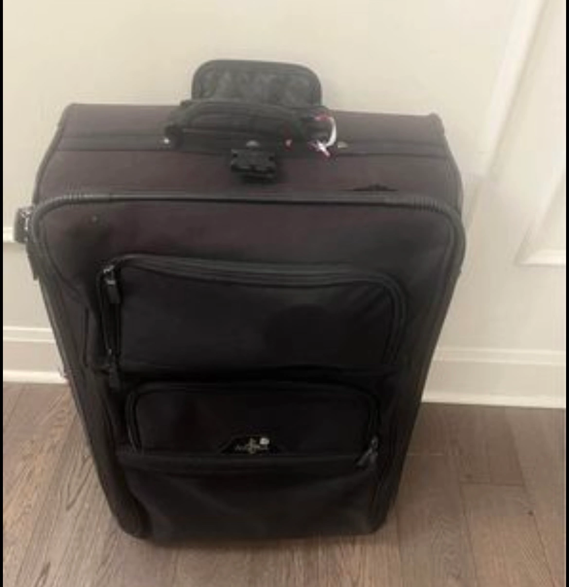Well made luggage with two front compartment and several inside compartment for your organizing needs Rolls perfectly with 2 padded cushion handles on side and top for easy retrieval, slide up and down handle. Slight hardly noticeable fretting but does not affect function. Location- Parklawn/Lakeshore Delivery available with extra cost