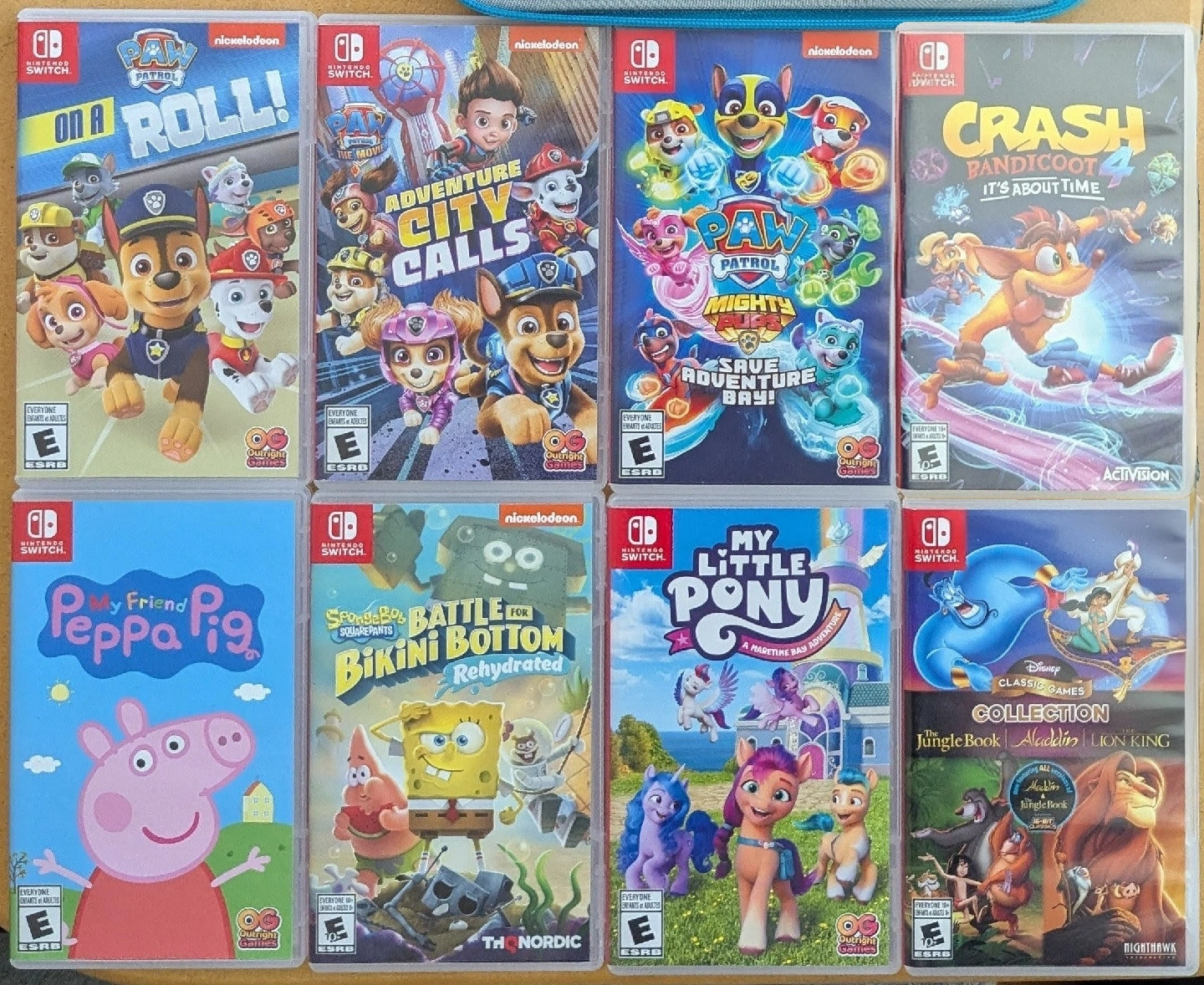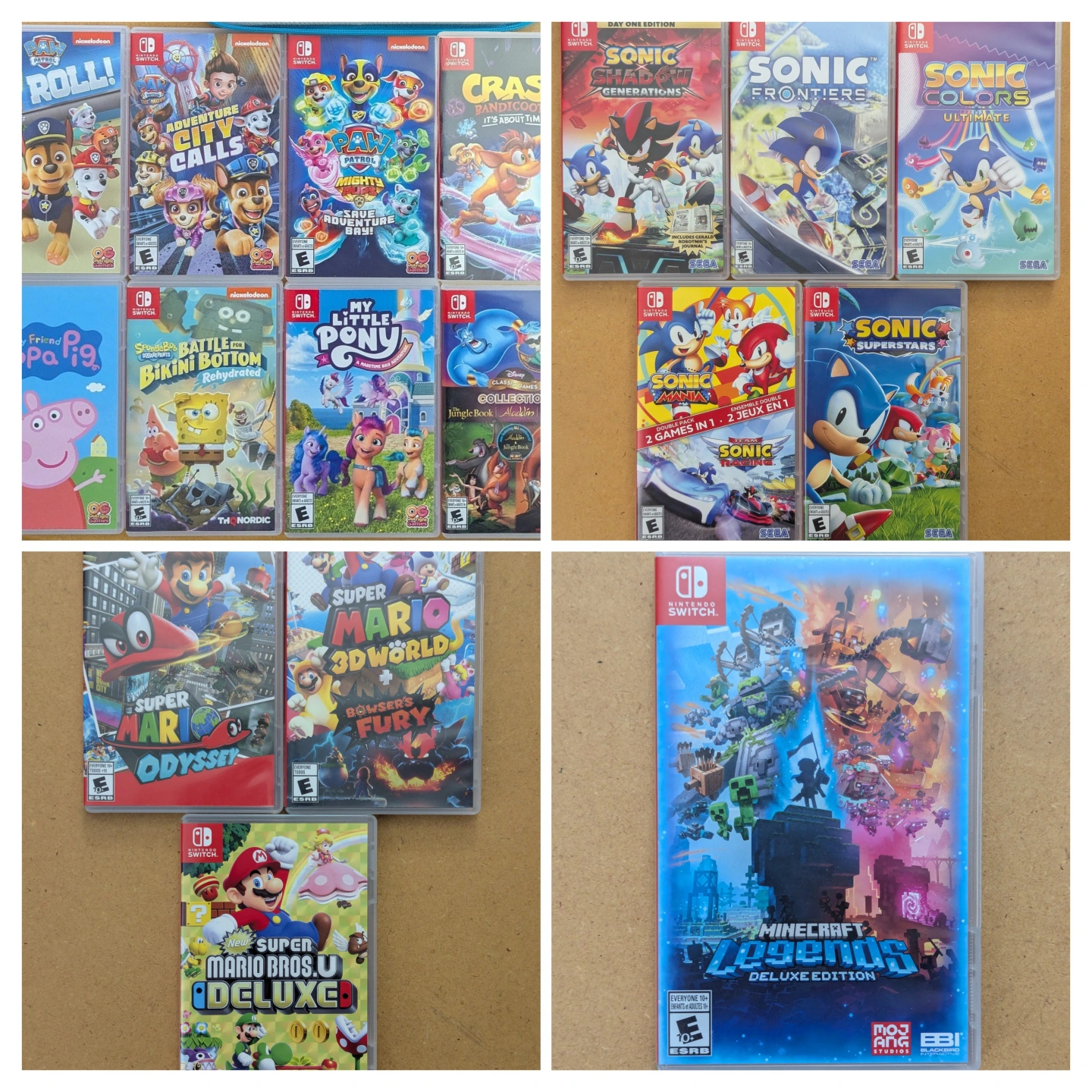 All are complete and cartridges are in excellent condition. Selling as a lot for $300 or individual prices listed below. Pick up in Radisson Heights SE, check out my other listings for more video game and Pokemon related items. -3 Paw Patrol $15 each -My little Pony $15 -Peppa Pig $15 -Disney Classics $15 -SpongeBob $20 -Crash Bandicoot $25 -Sonic Generations $30 -Sonic Frontiers $20 -Sonic Colors $20 -Sonic Mania/Racing $20 -Sonic Superstars $20 -Mario Odyssey $45 -Mario 3D World $45 -Mario Bros Deluxe $40 -Minecraft Legends $30