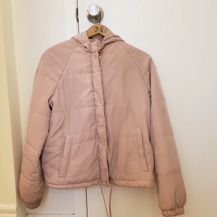 It's well loved but there are no structural damages. It can keep you dry in the spring and fall rain and works well with a thick sweater even in winter. It isn't pictured but it has a hood.
