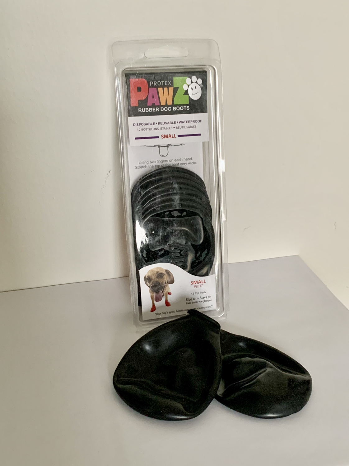 Perfect to protect your dog’s paws from salt or rainy day mud! I love these boots but sadly I bought the wrong size. There are 10 new boots and 2 with gentle use. Size: Small Colour: Black