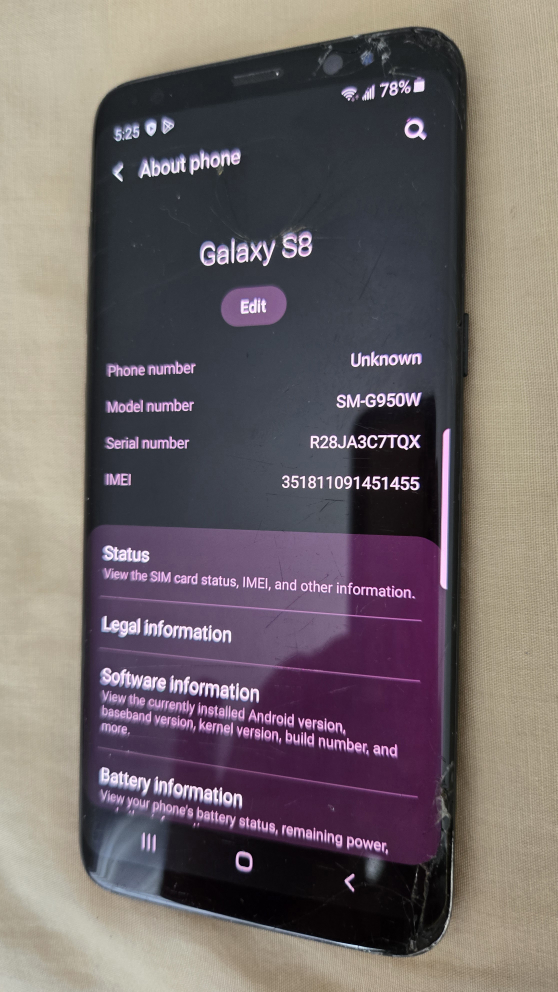 The phone is in good condition. There are some hairline cracks and there is cracked on bottom right corner on the screen, but they do not affect the functionality of the touchscreen. The battery is in good condition. The phone is unlocked and can be used with any carrier. $70 Pick up in Castleridge