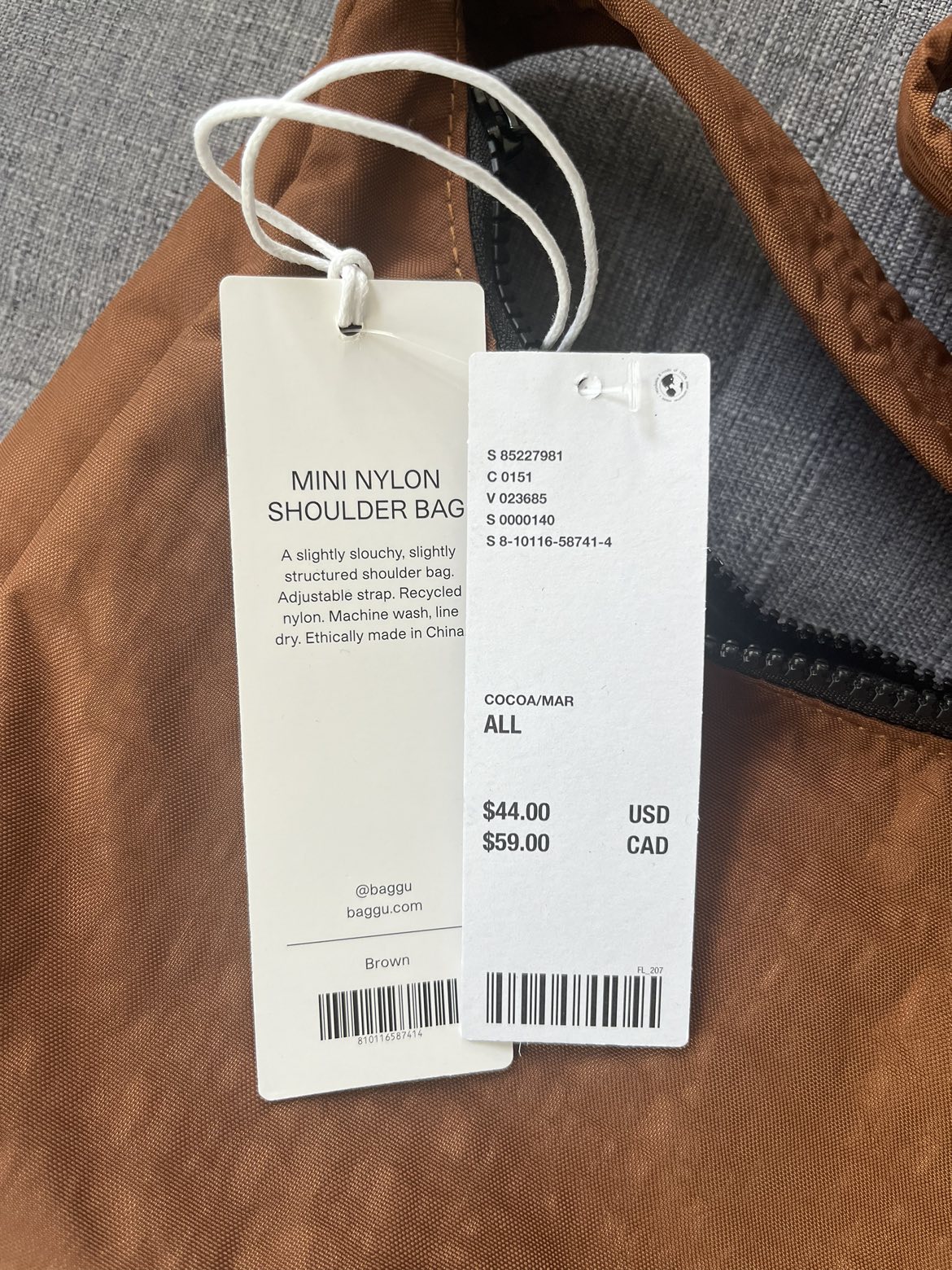 Baggy Mini Nylon Shoulder Bag in brown - brand new with tags! Never worn or used. Pick ups in CityPlace, near Spadina/Bremner.