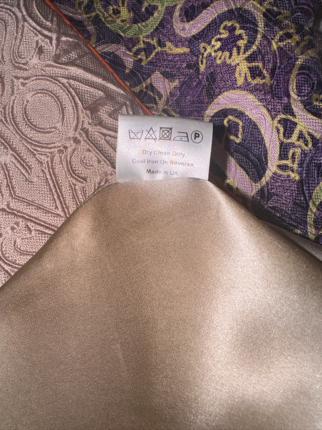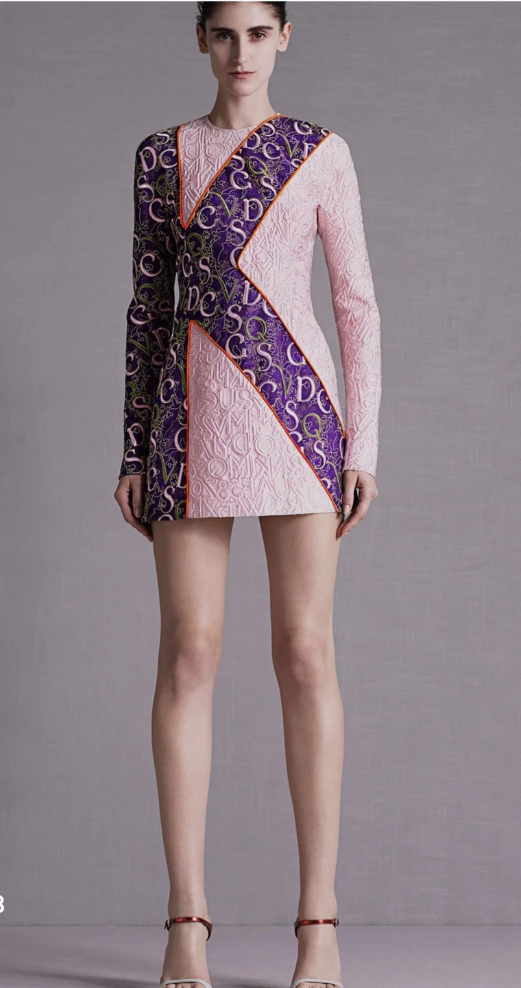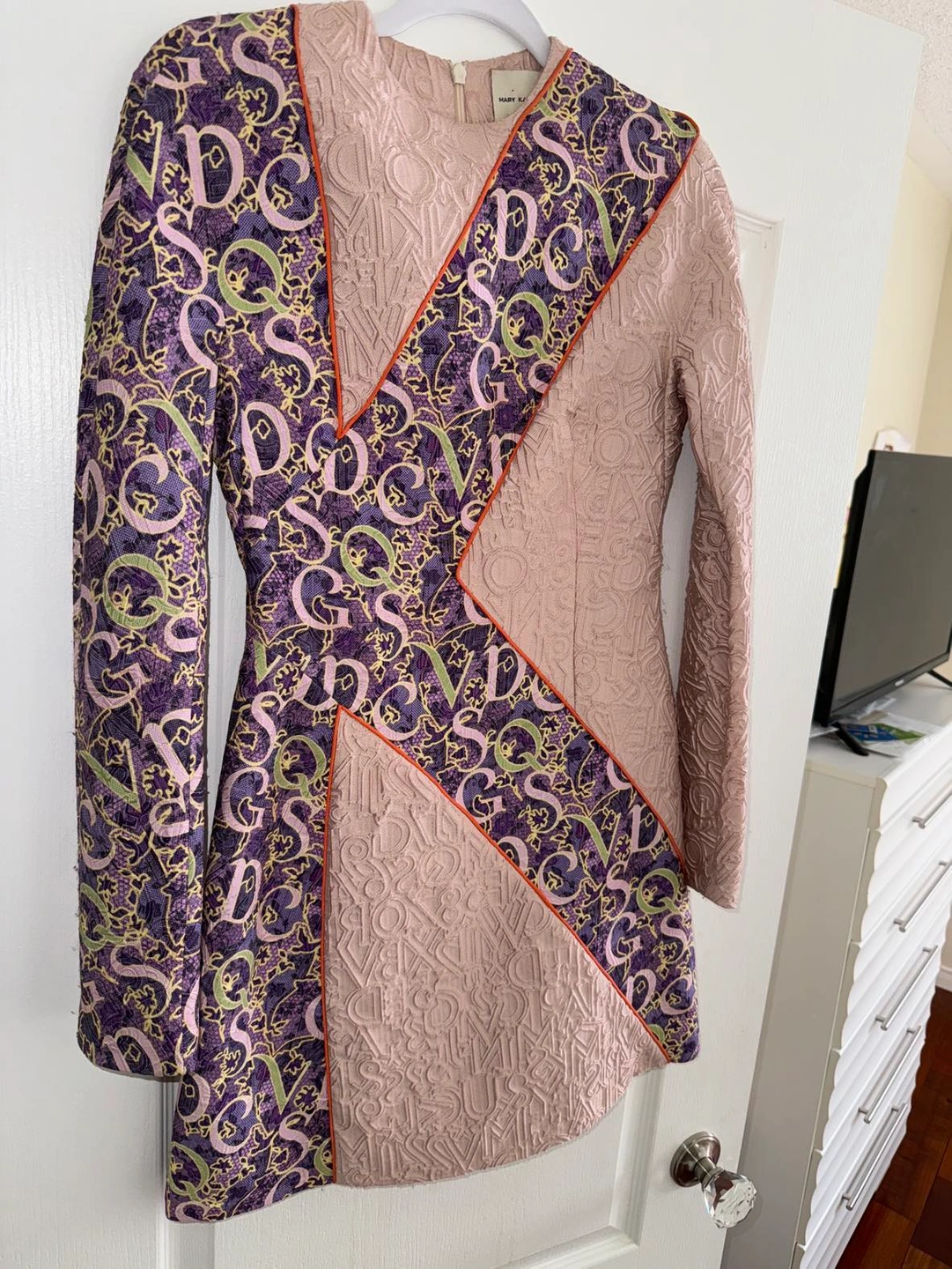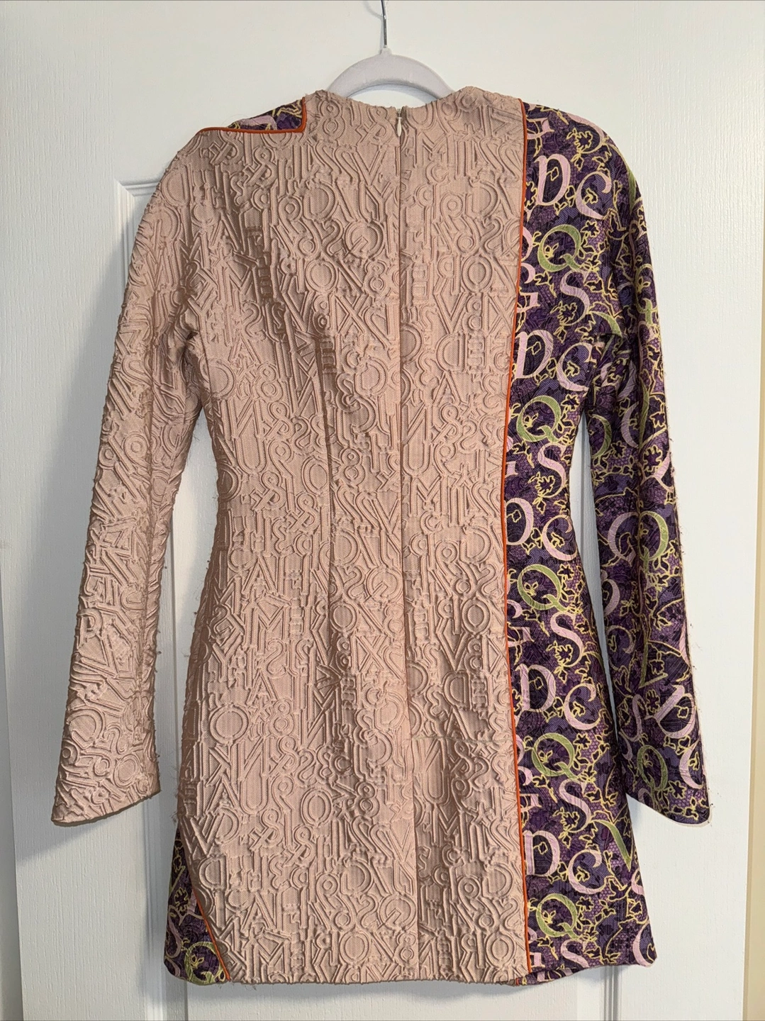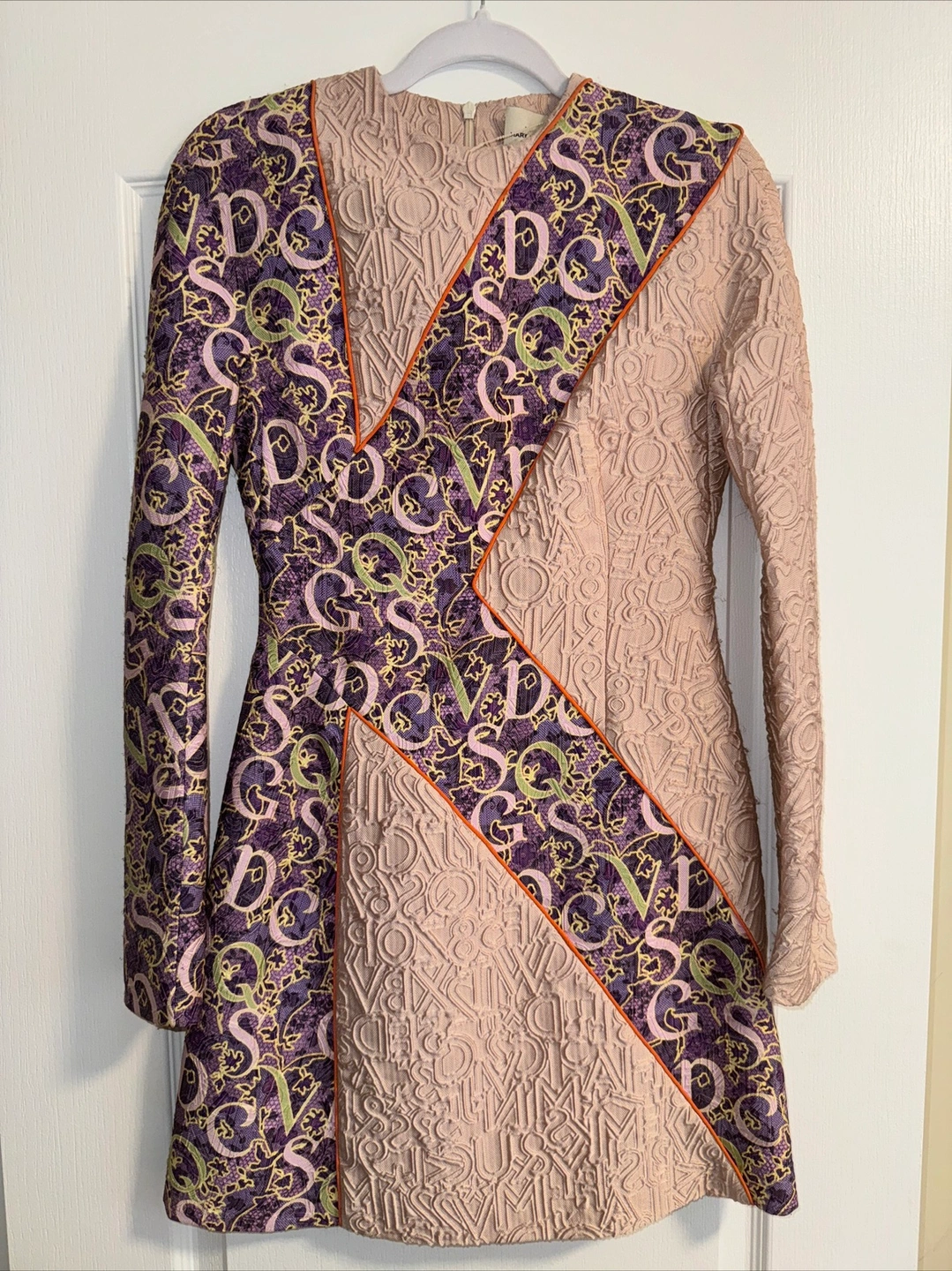 Calligraphy dress. Silk lining and rest is a silk blend Never worn. Still has two plastic tags attached. New with 2 plastic tags still attached (the paper part fell off after all this time). From 2014 Resort Collection Really awesome price for a dress from this designer. This dress retailed originally around 1700$…. I don’t remember the exact price.