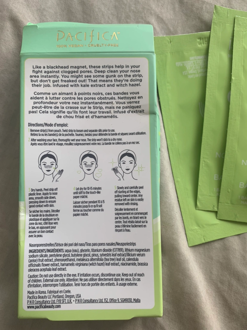 4 unopened pore strips in this box (I used 2). These are vegan cruelty free pore strips I ordered through Ipsy. I don’t need them Anymore. #freecycle
