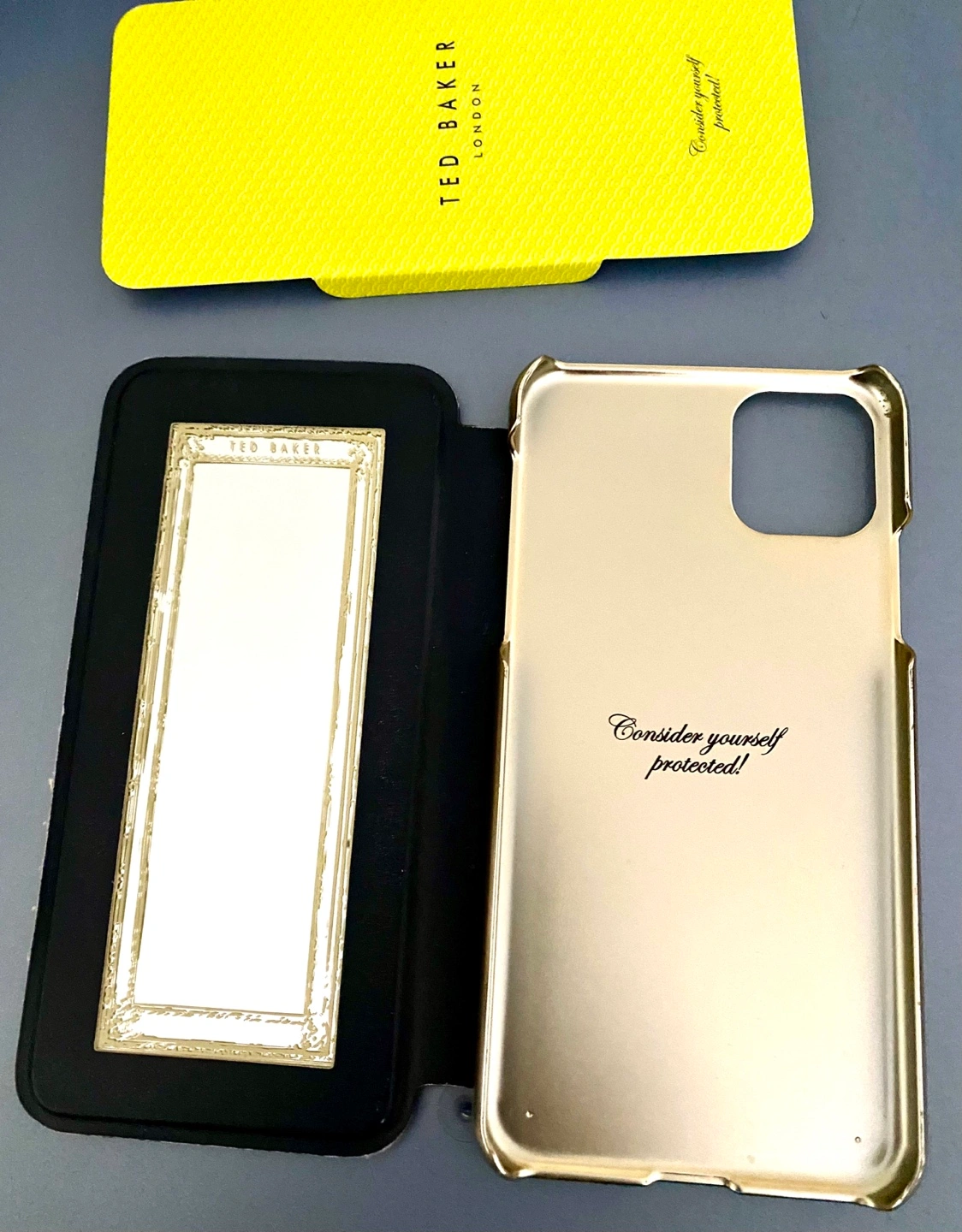 Beautiful Ted Baker designer Hedgerow iPhone 11 Pro Max case! Gently used, wearing in outer binding as shown, rest is really good shape. Includes inside mirror. As shown. Hard to find. PICKUP ONLY Cash only