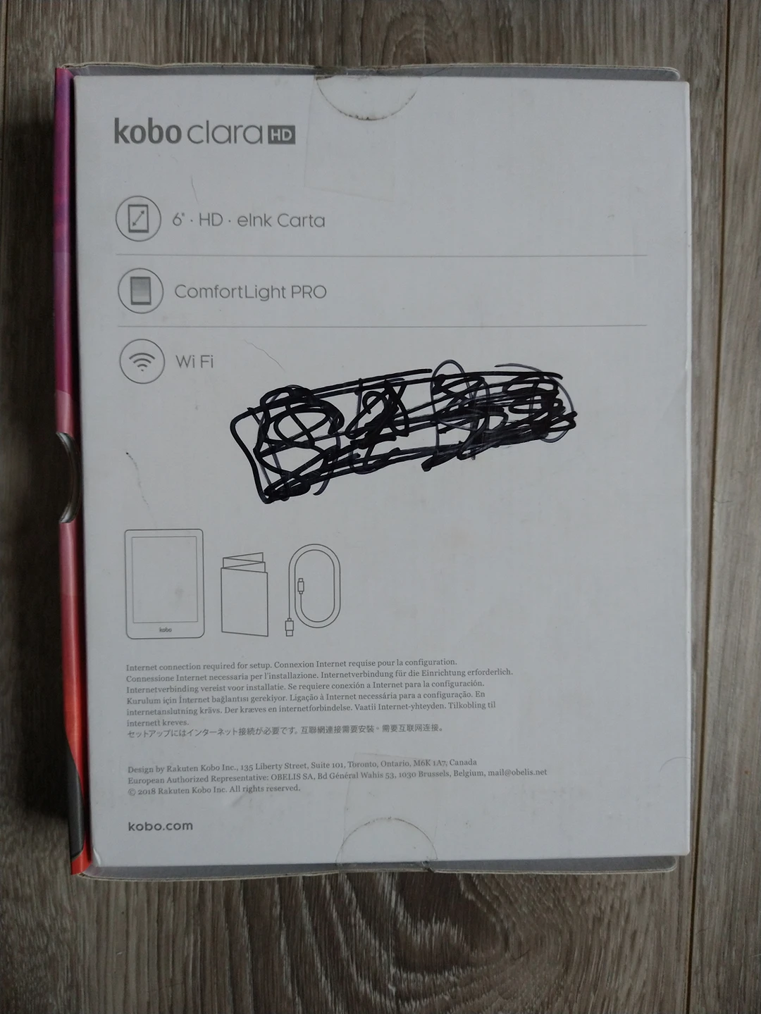 Brand New Kobo e reader. never used. only opened the box to take the picture. unfortunately some marks on the packaging itself.