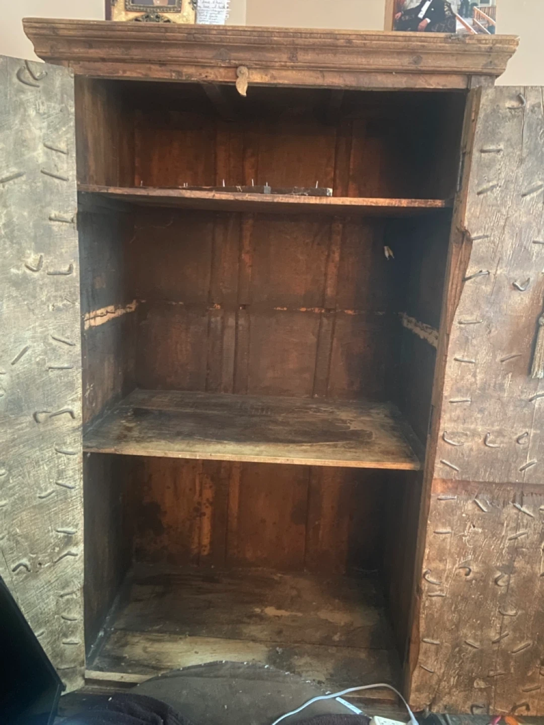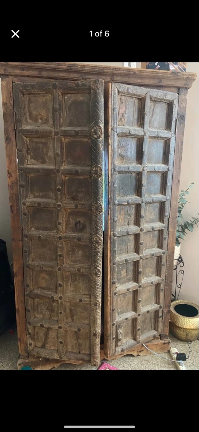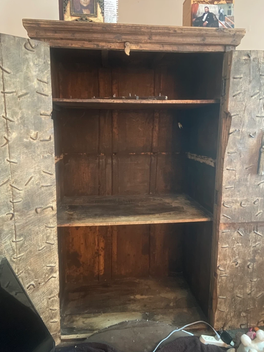 Gorgeous antique cabinet. Bought for 2400.00 about 30 years ago . Have used for a tv cabinet , and a wardrobe at one point . Love it so much but am moving and cannot take with me . Hoping someone will love it as much as we have . Seriously interested inquiries only please . Will measure asap . It’s about 6 feet tall .