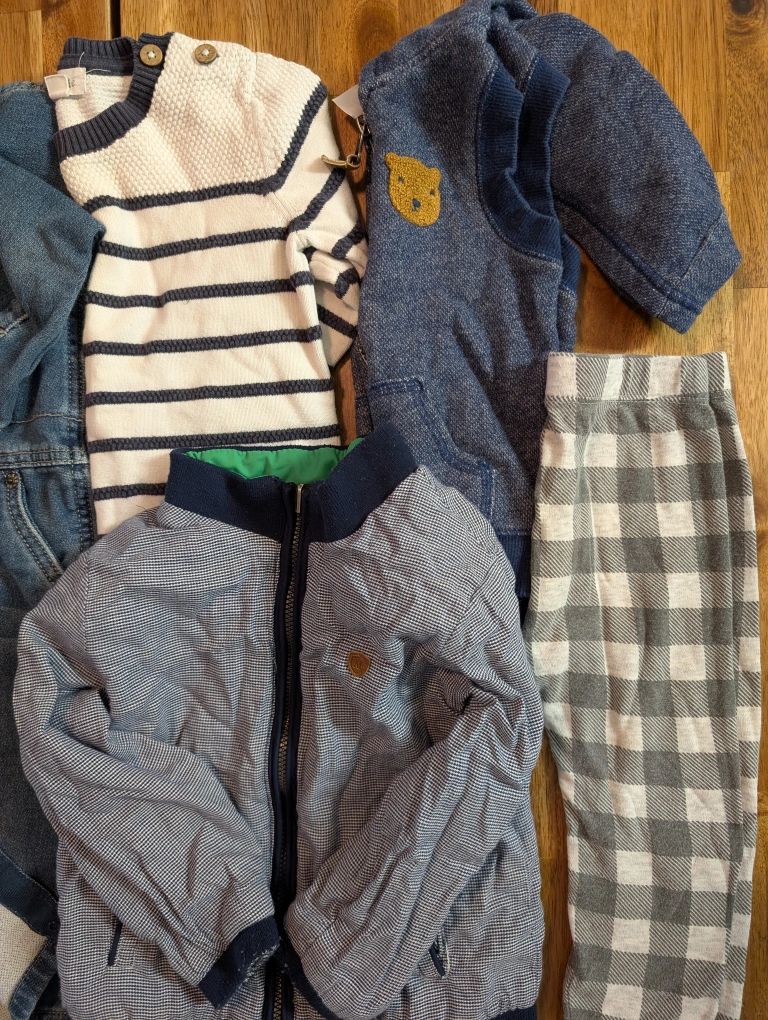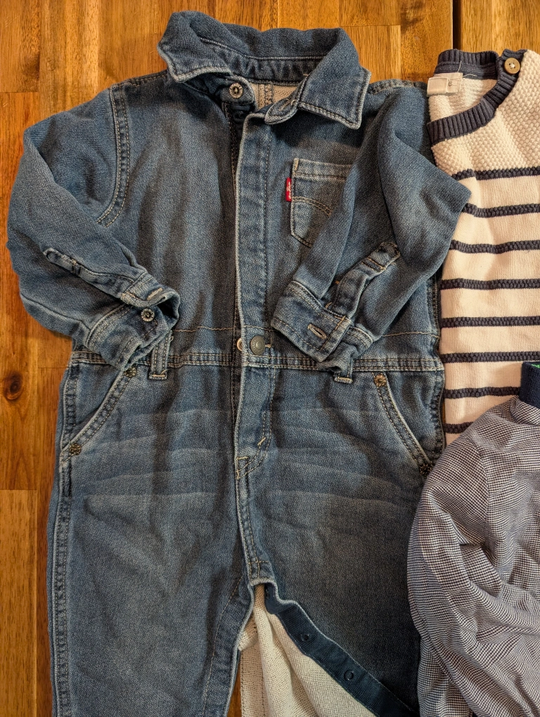 Great condition. My little has outgrown these: Light Mayoral jacket, Levi's onesie (soft stretch denim look) pants, sweater and vest. 5 pieces for $5 š£ Condo pick up only: Burnaby near Edmonds Station. Anytime. Will provide exact address. Must pick up at my building door (not the curb/sidewalk) Check out my other baby items I have listed.