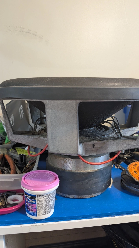 Selling a 18" Audio subwoofer.box looks in used condition but sub works great!box is random half fast leaky and lil tartly but all 8 had to house it ..Sub Perfect for adding some serious bass to your car audio system. Please check the pictures for the condition