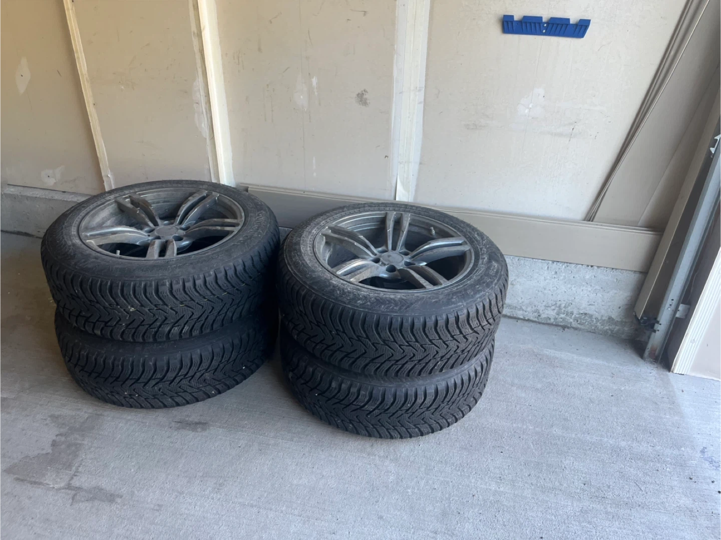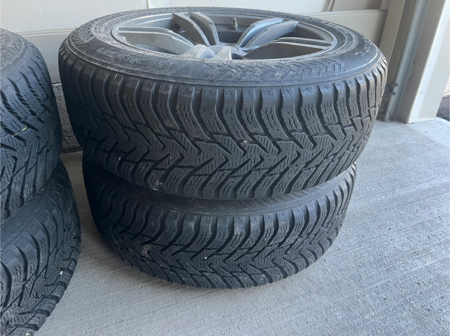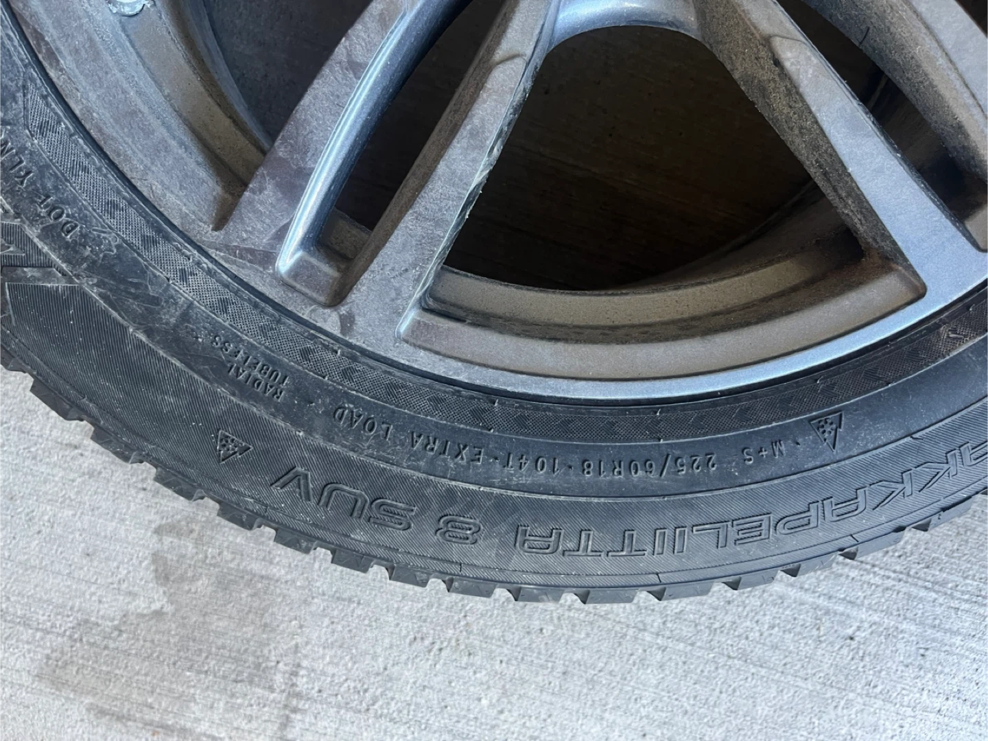 Set of 4 premium Nokian Hakkapeliitta 8 SUV winter tires mounted on 18" alloy rims. • Size: 225/60R18 104T XL • Tread: ~75% remaining • Tires are in excellent condition – no damage, stored indoors • Rims: Multi-spoke alloy, 5x120 bolt pattern – Was used on BMW X3