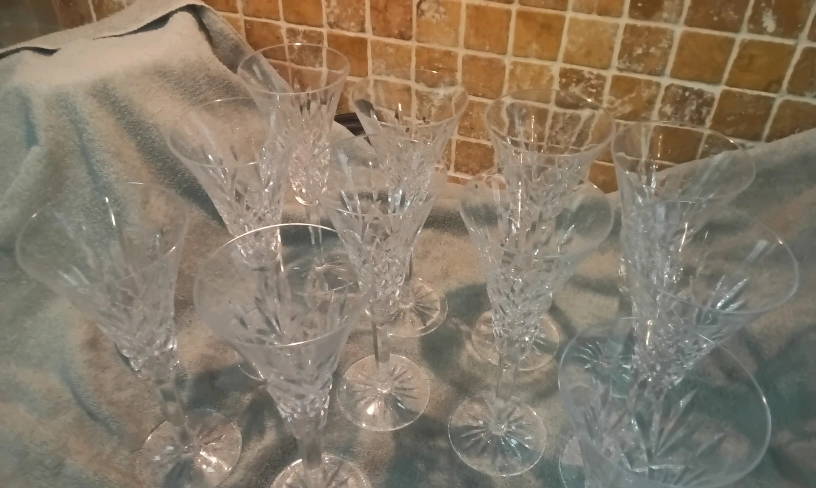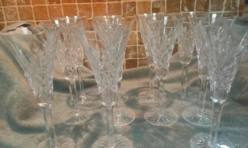 18 x WATERFORD CRYSTAL ASHBOURNE CHAMPAGNE and WINE GOBLETS asking $660.00 NOW REDUCED $360.00 These are much more valuable than asking price Elegant Heavy Cut Lead Crystal with Criss Cross and Fan Cuts and a Star Cut Foot A Wonderful Wedding, Anniversary or Any Occasion Gift or Addition to Your Own Waterford Collection. RETIRED PATTERN: 1987 - 2017 Height: 8.5 in Width: 3.5 in Signed: THERE ARE 11 of this Size -----------------‐----------------------------------------------- Height: 8.5 in Width: 4.5 in Signed: THERE ARE 7 of this Size ------------------------------------------------------------------- Crafted in Ireland Waterford Crystal Offers A Classic Combination of Brilliance and Clarity Established In 1783, Waterford Crystal Is Cherished Around the World for Its Rich Tradition of Craftsmanship and Artistry Each Piece is Designed and Handcrafted by Master Artisans Please Pickup Clarkson Area Mississauga or I offer Delivery Willing to Ship at Buyers Expense Please take time to view my other Ads for more.... China Sets, Art and Collectibles