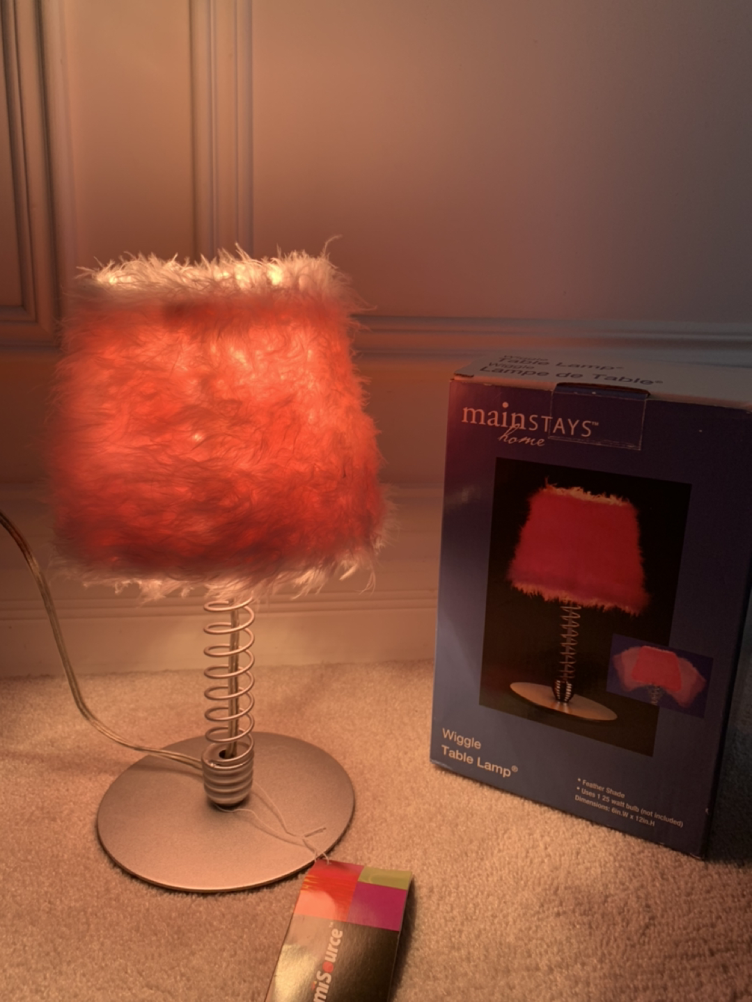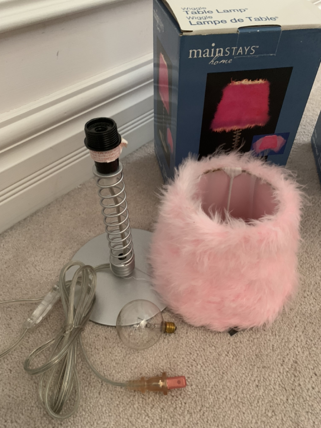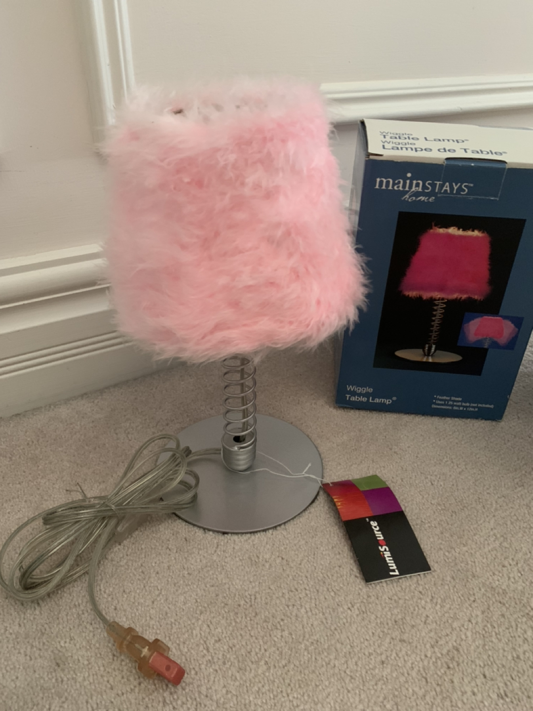 Table wiggle lamps in excellent condition with pink fuzzy shade. Will include light bulbs. Have 2 of them. Great to put on side tables to decorate room
