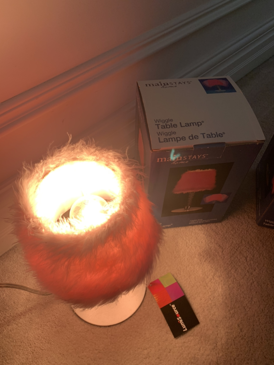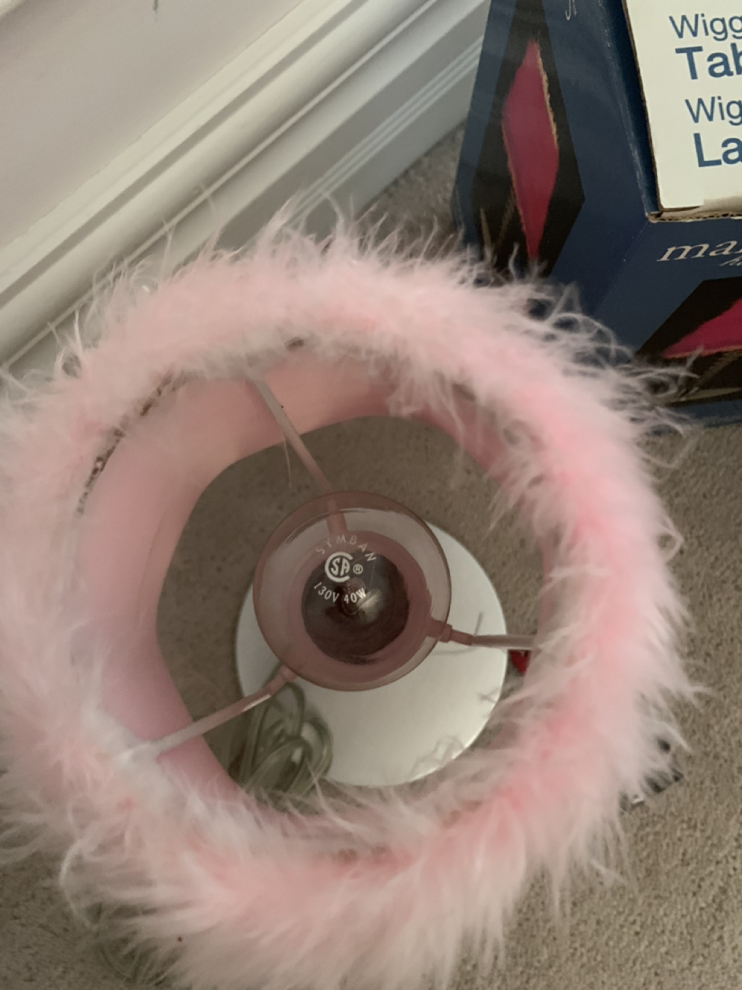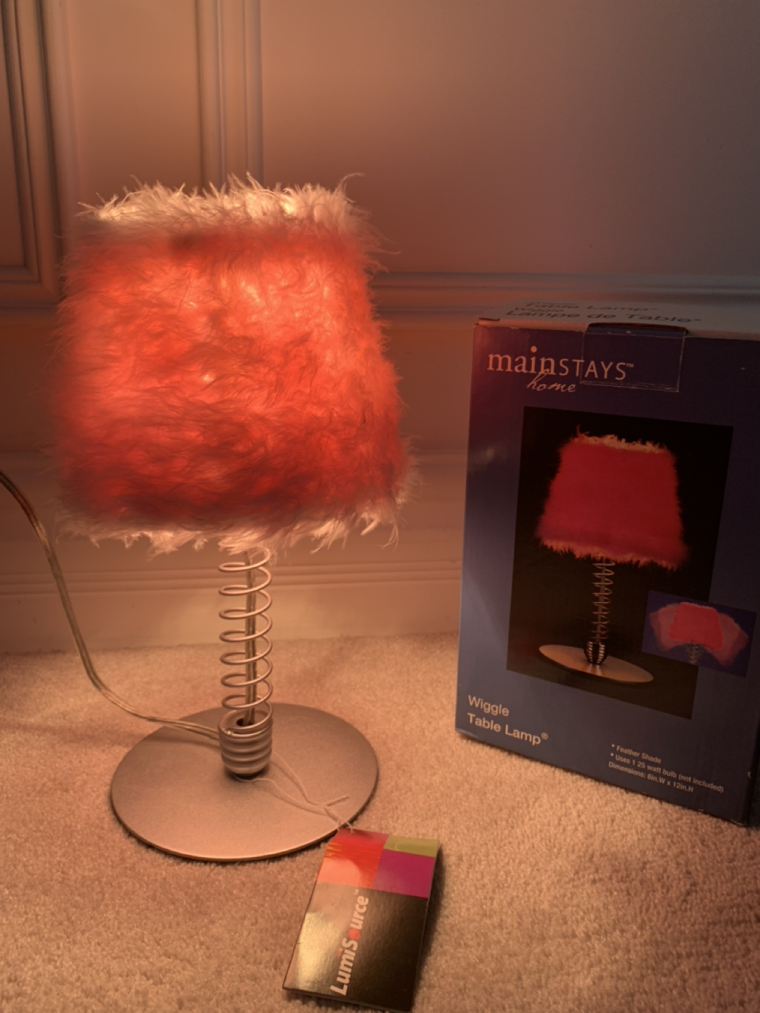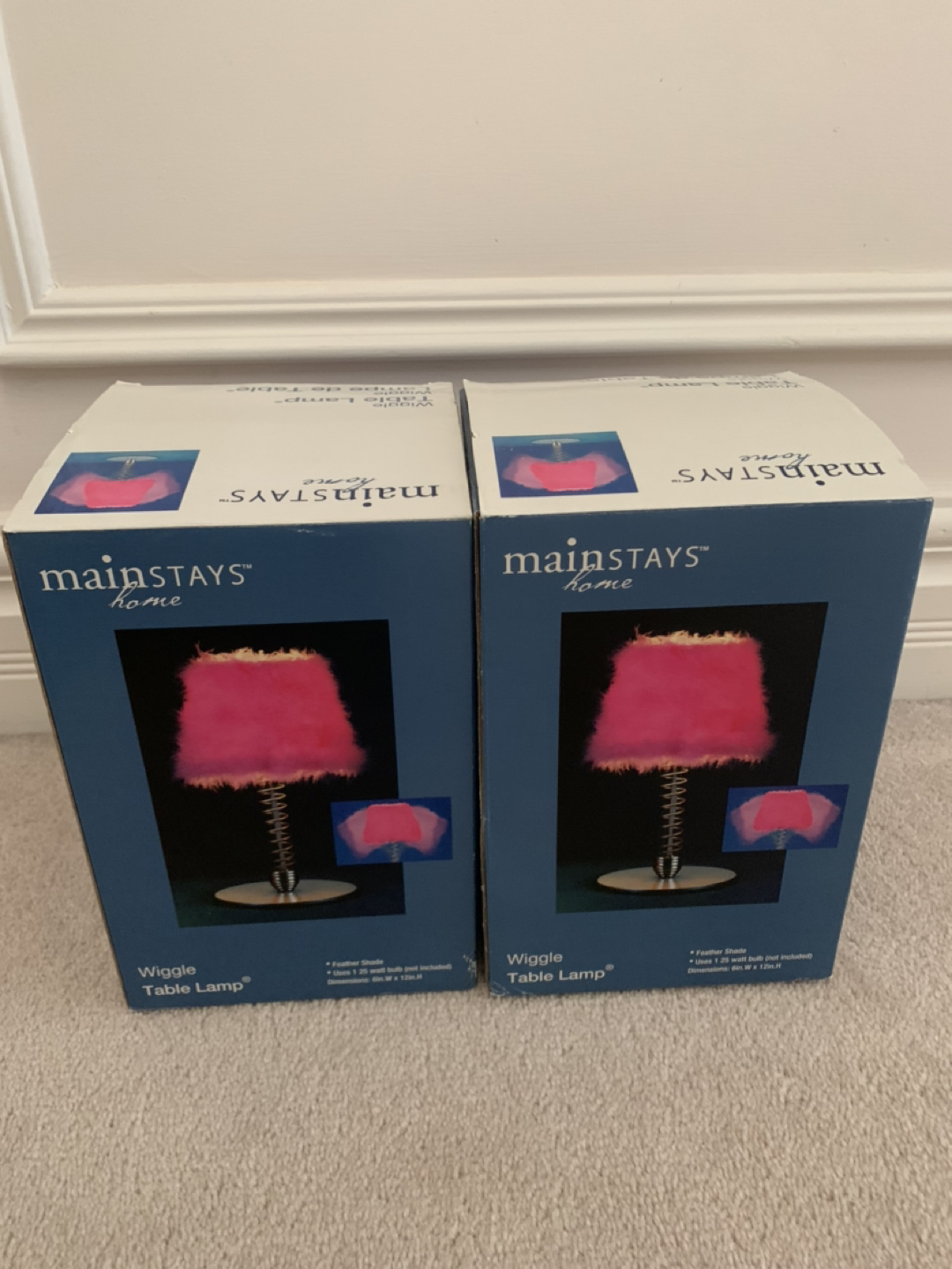 Table wiggle lamps in excellent condition with pink fuzzy shade. Will include light bulbs. Have 2 of them. Great to put on side tables to decorate room