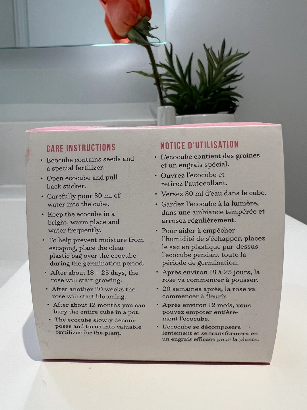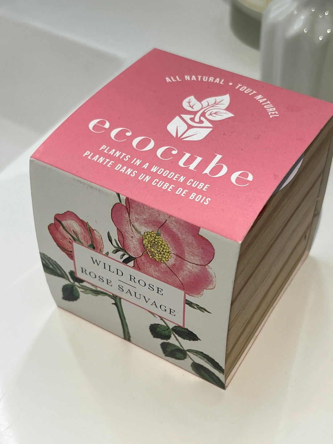 - wild rose growing kit - NEW (Never Opened) - Wooden Cube size; 3” x 3” x 3”