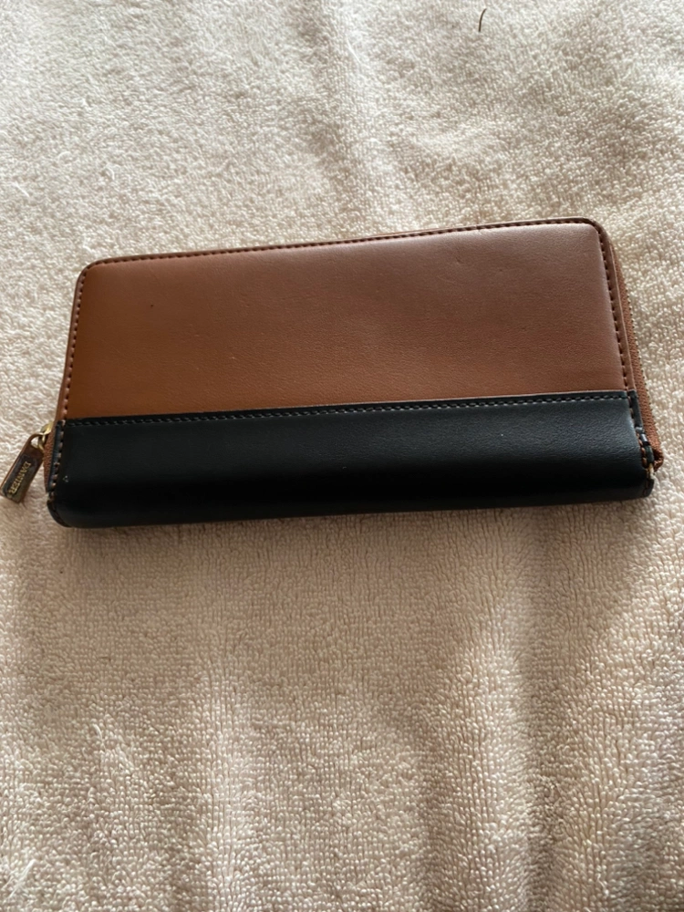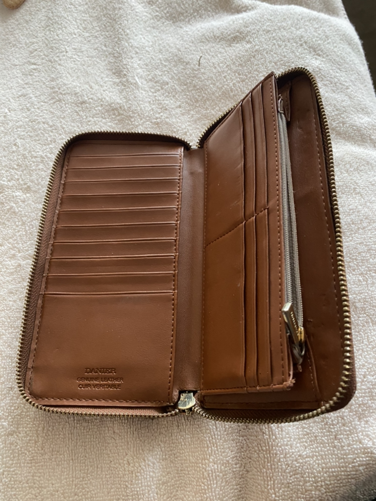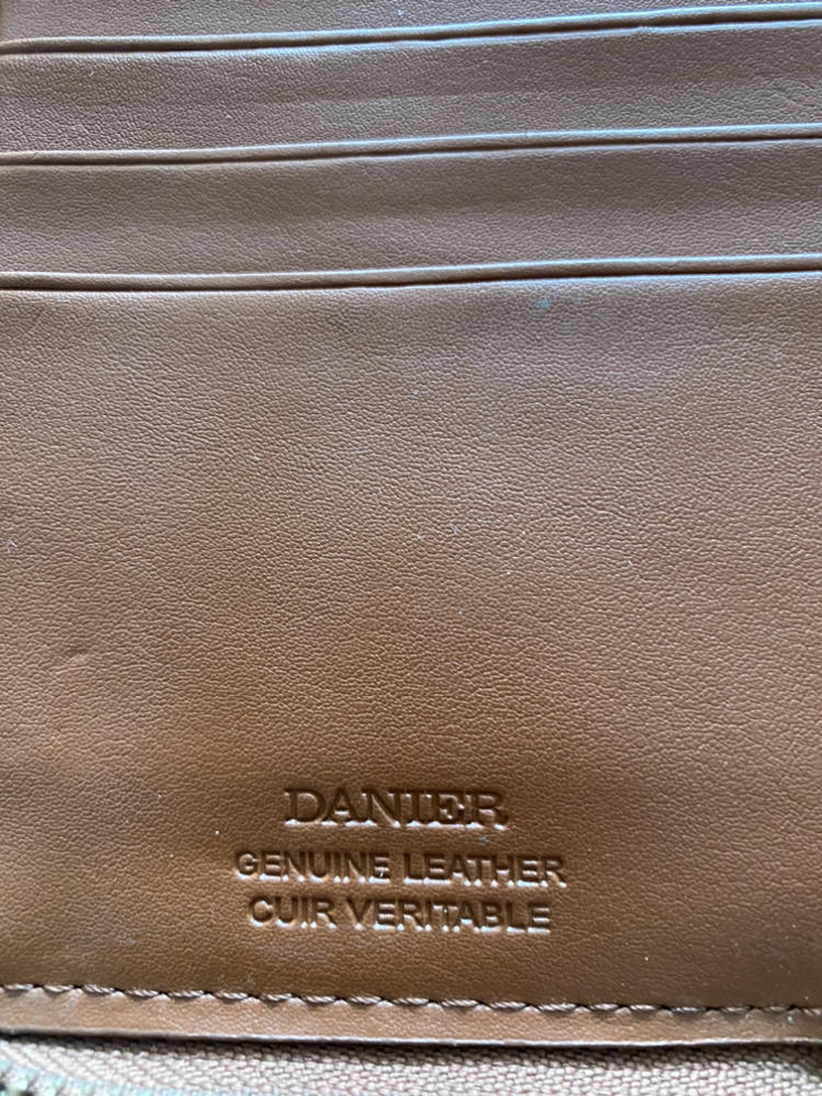 Danier brown/black king leather wallet with multiple slots for credit cards and a zipper compartment in very good condition