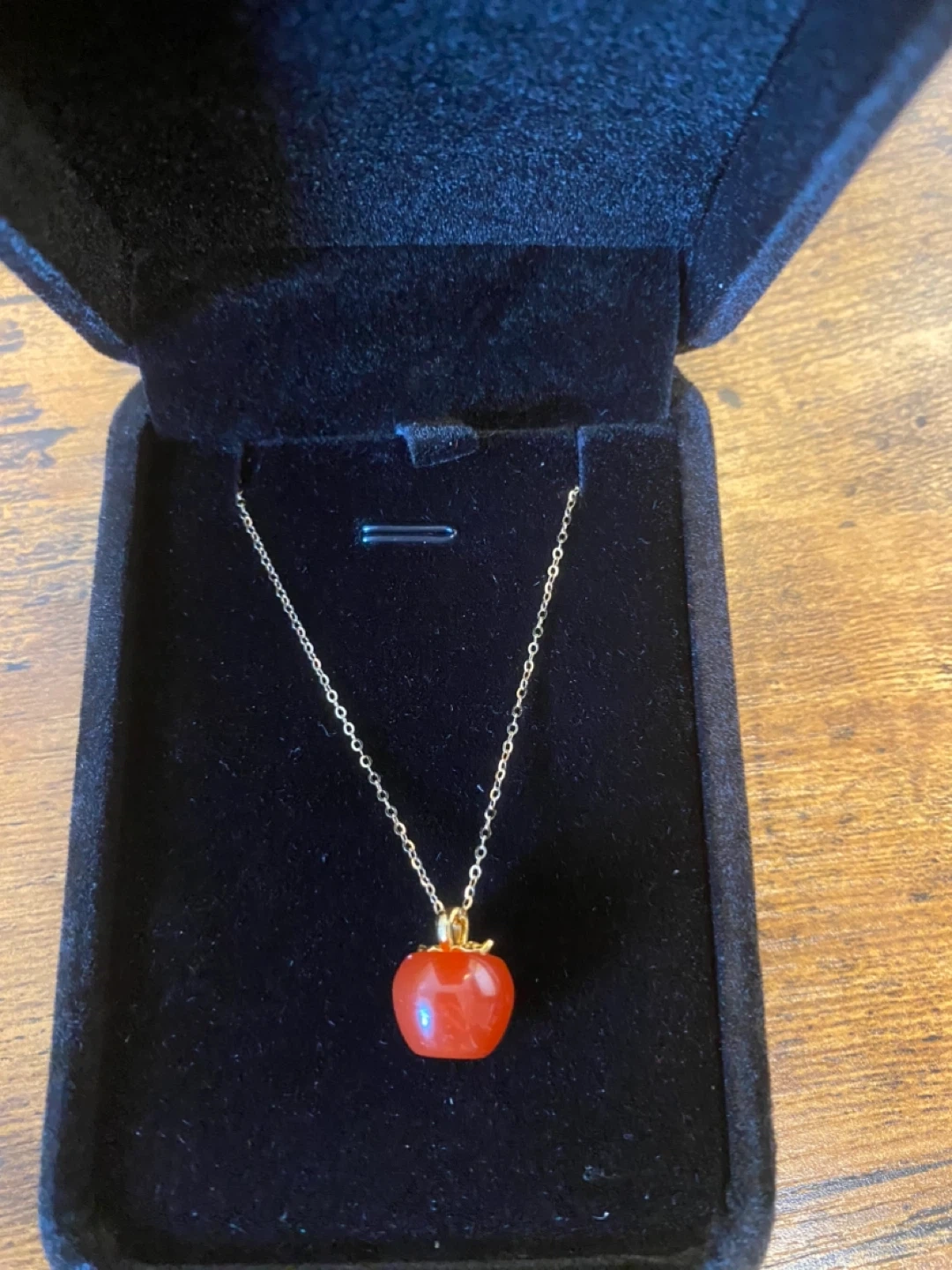 18K Gold and red Garnet Apple necklace The Length is 45cm (17.5inches) Genuine 18K Gold with a red garnet in the shape of an apple