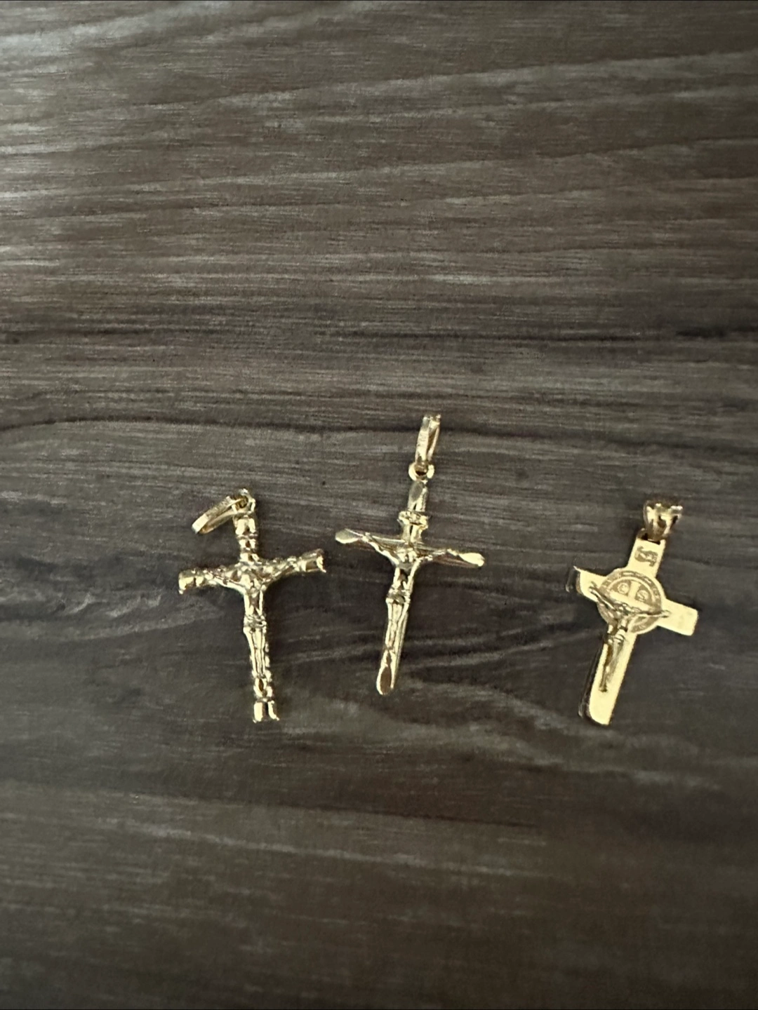 18k Yellow Gold Real Gold not plated, not filled Crucifix Dubai Gold 3 available CRUCIFIX GOLD, 18K, 0.83 Grams; - $150 st benedict cross third pic CRUCIFIX GOLD, 18K, 1.07 Grams; - $200 first pic CRUCIFIX GOLD, 18K, 0.62 Grams; - $150 2nd pic Chain not included. For picture purposes only. Pickup in Milton Serious buyers only. No to low ballers and will be ignored. Reasonable offers only.
