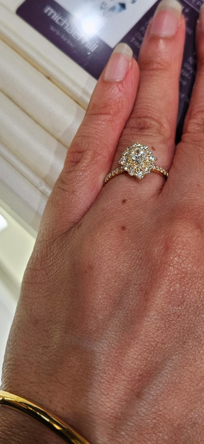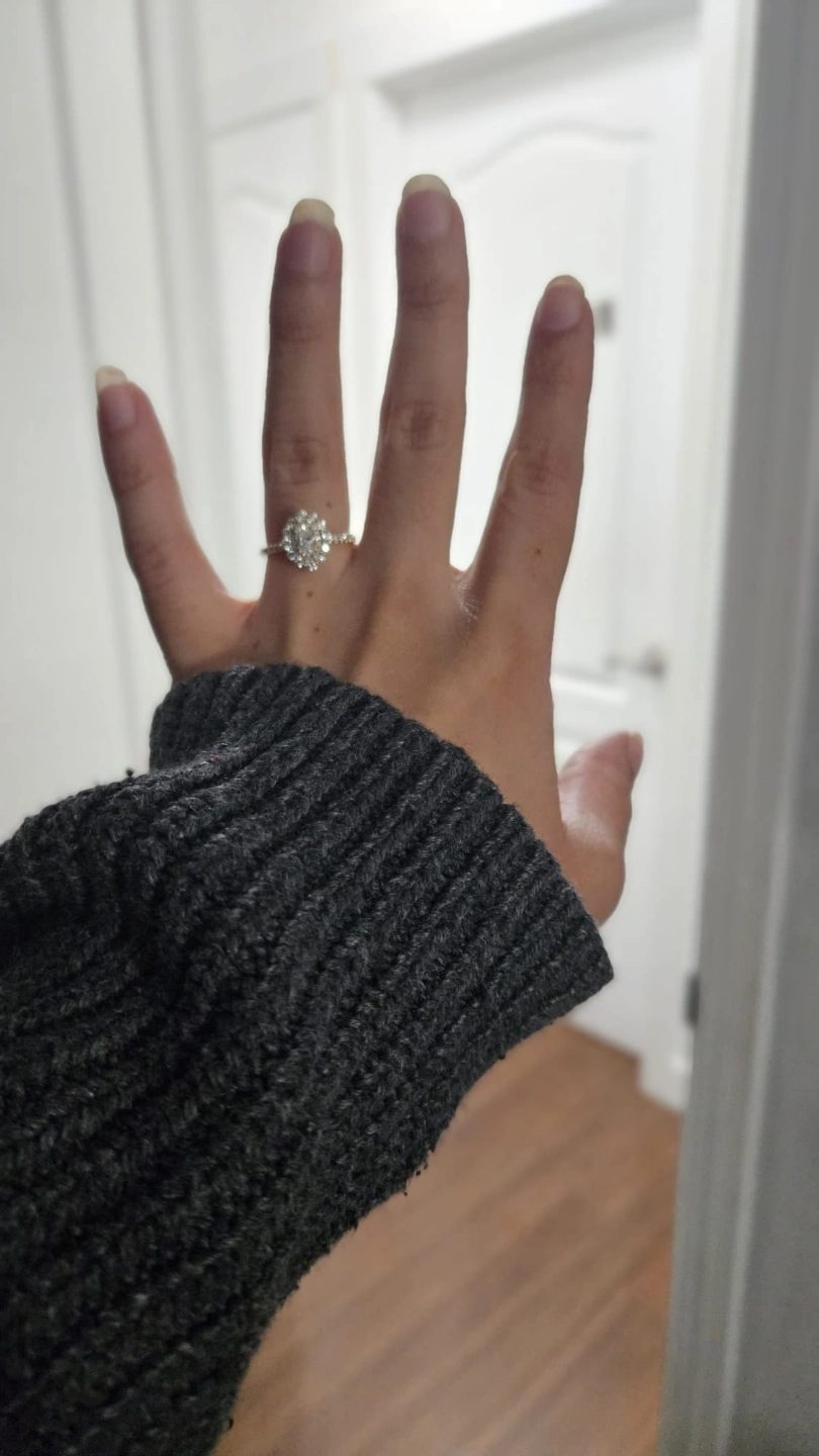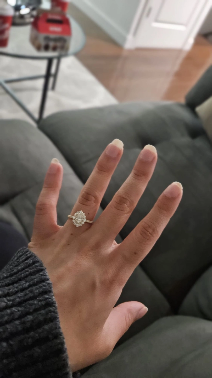 Beautiful marquise-cut diamond engagement ring. 18k yellow gold setting. Sparkling diamonds. Elegant design. This ring was purchased in October of 2023 for 4000$ It is in excellent condition and pretty much brand new.