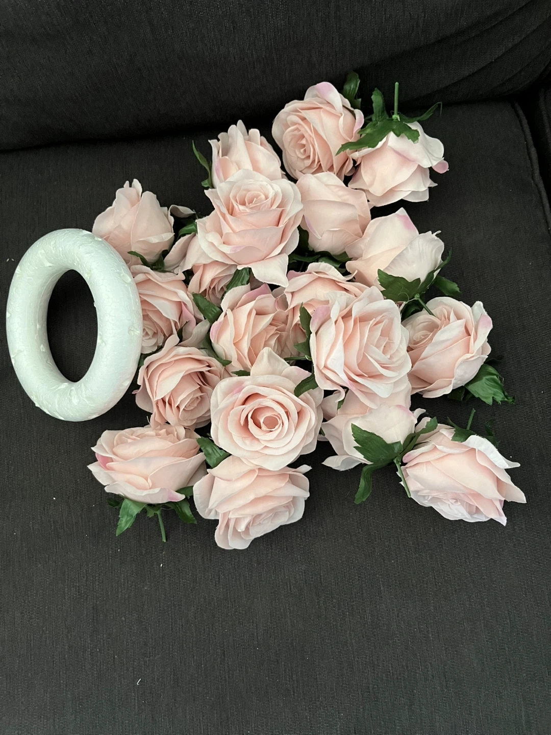 Selling a set of pink artificial roses. They are in great condition and would be perfect for decorations or crafts