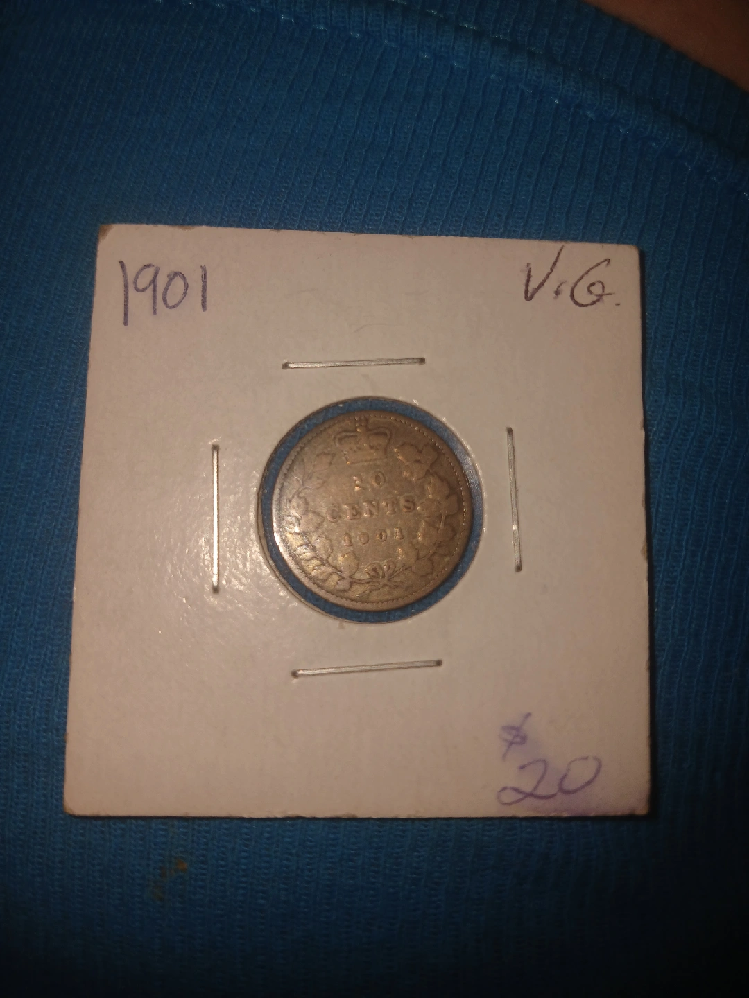 Selling a 1901 Canadian 10 cents coin, in V.G. condition. Asking for 15 dollars