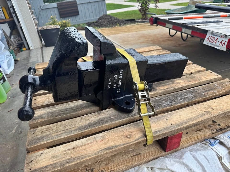 1908 Reed 107 vise. My grandpa pulled this out of a mill in BC back in the 60s, functions great, has a few scars but for 117 years old it’s in great shape. Weighs about 200 pounds. Great for collectors or blacksmiths.