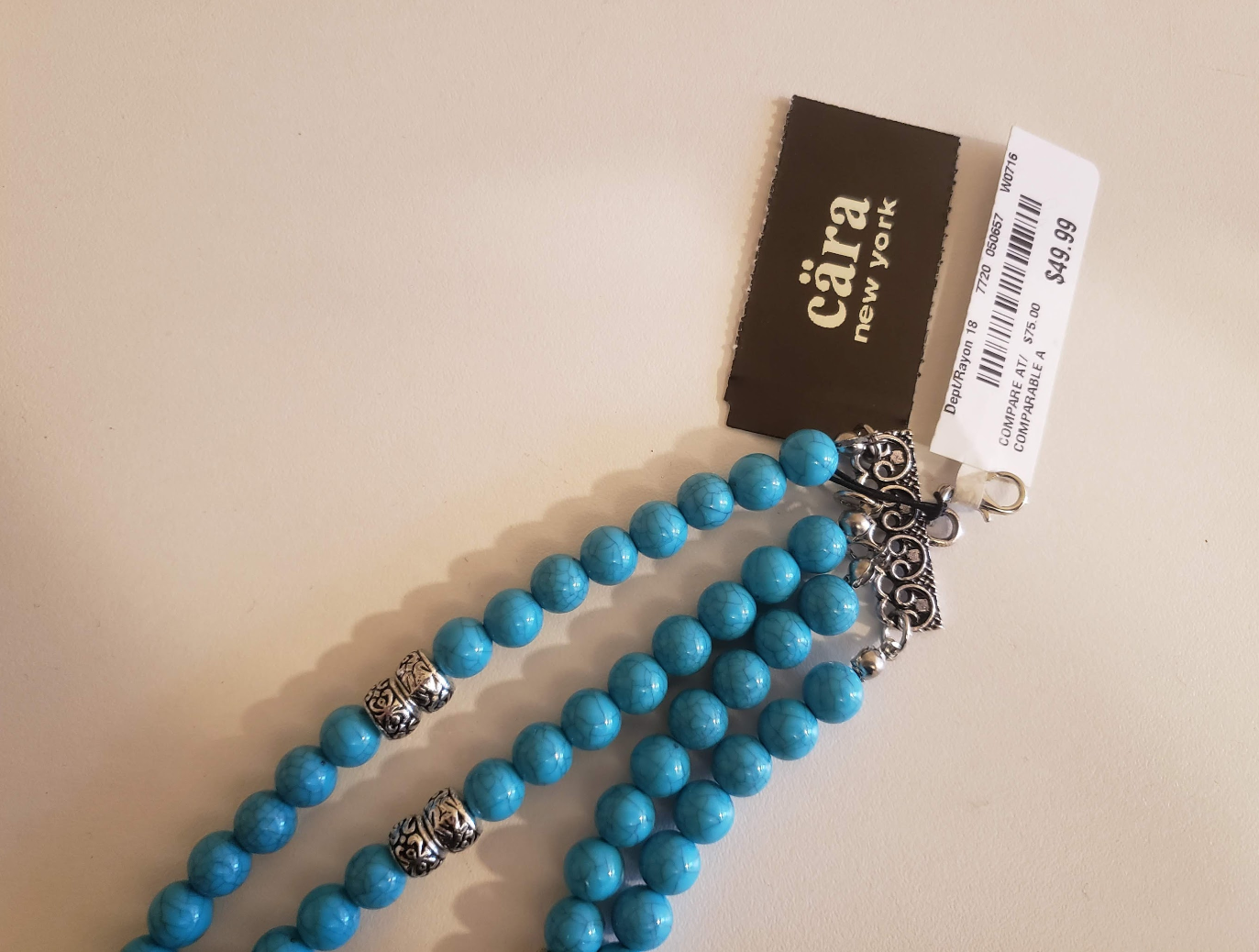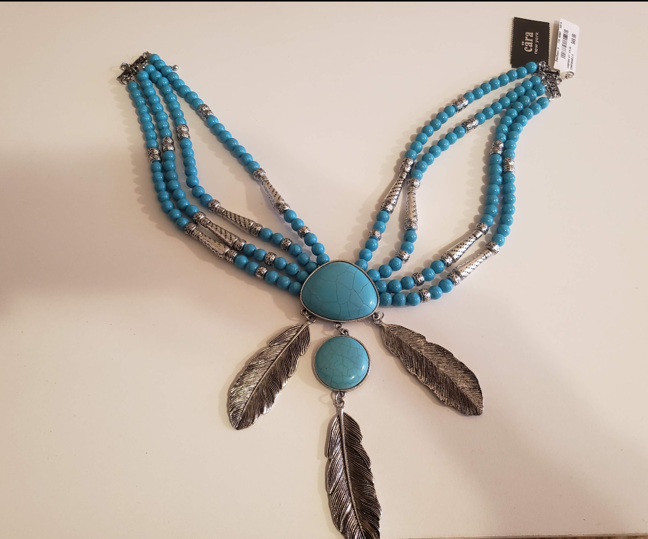 Brand new. This very beautiful and chic turquoise necklace can truly dress up any outfit, check it out for yourself! Retail value is $49.99. **Please note that price is negotiable provided you can pick it up in the Woodbridge/Vaughan area. Please check out my other listings to get a bundle offer.