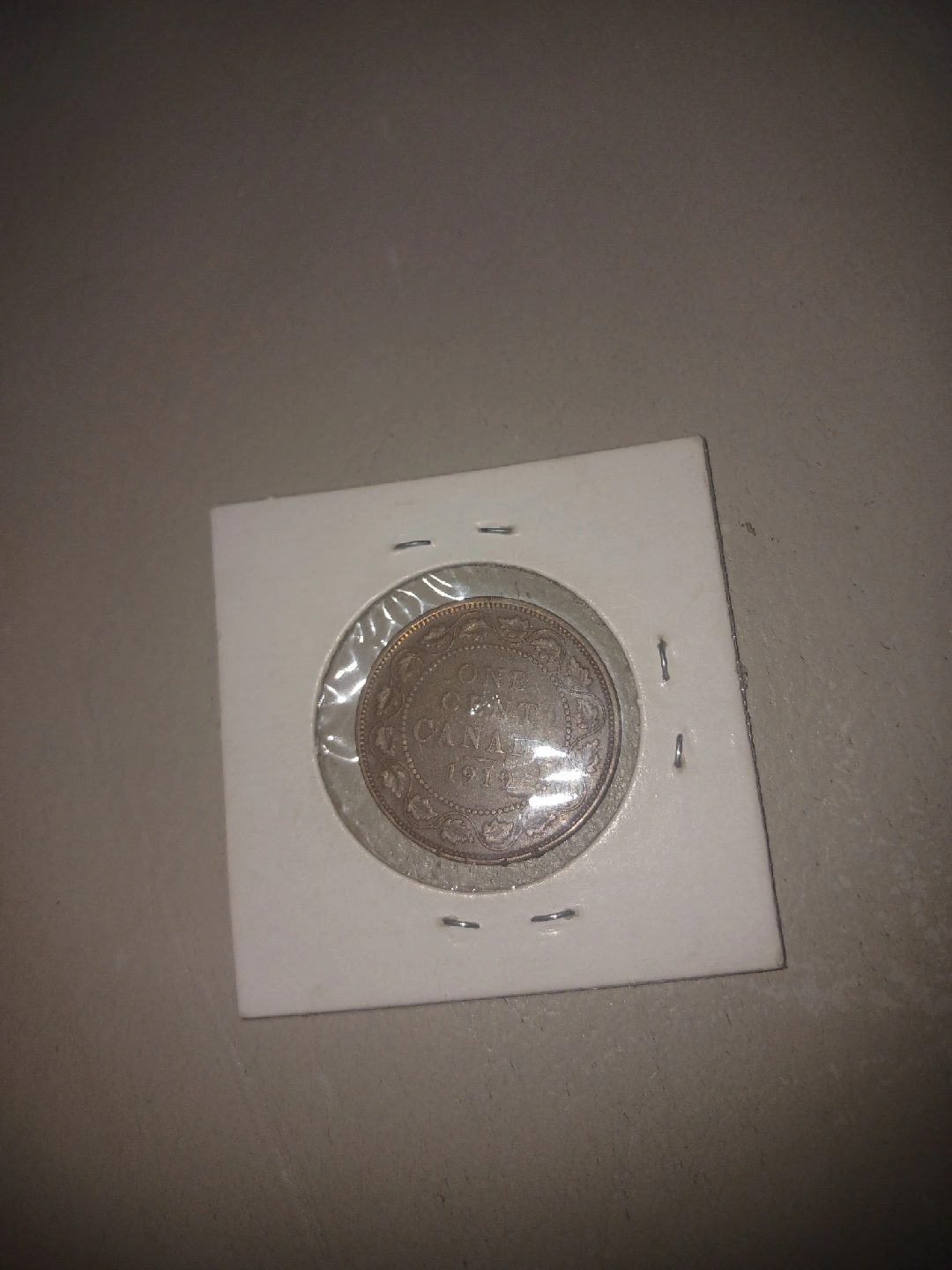 Selling a 1912 Canadian one cent coin. It's in a protective holder and asking for 5 dollars