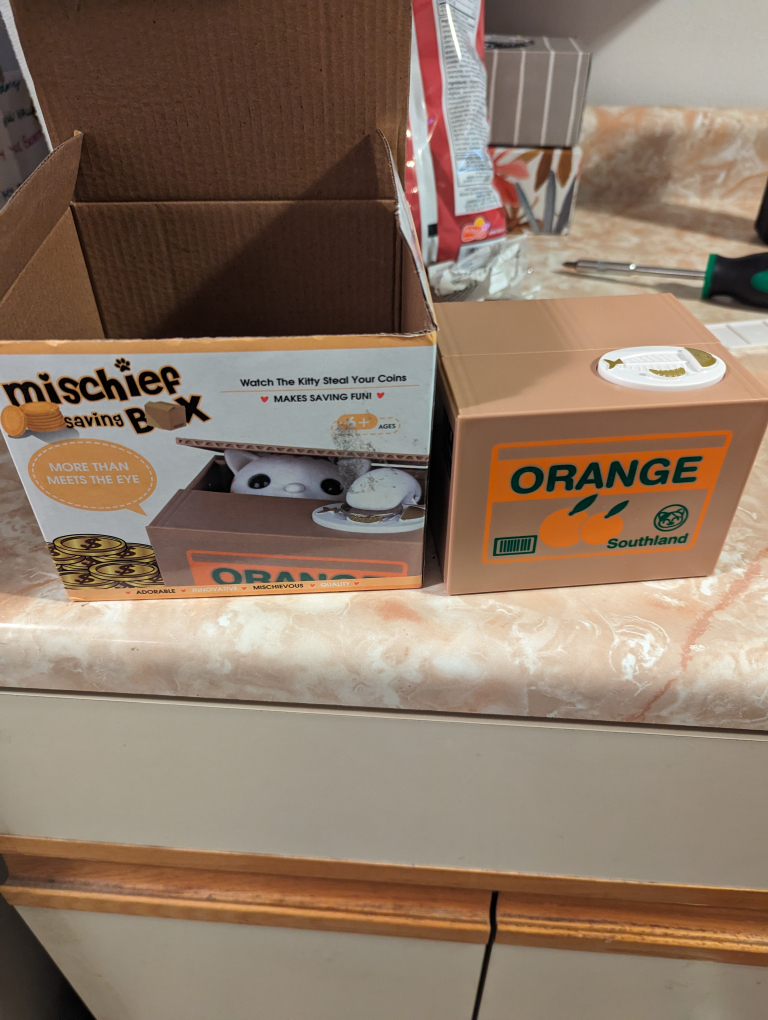 put a coin on top and the cat comes out and steals the coin