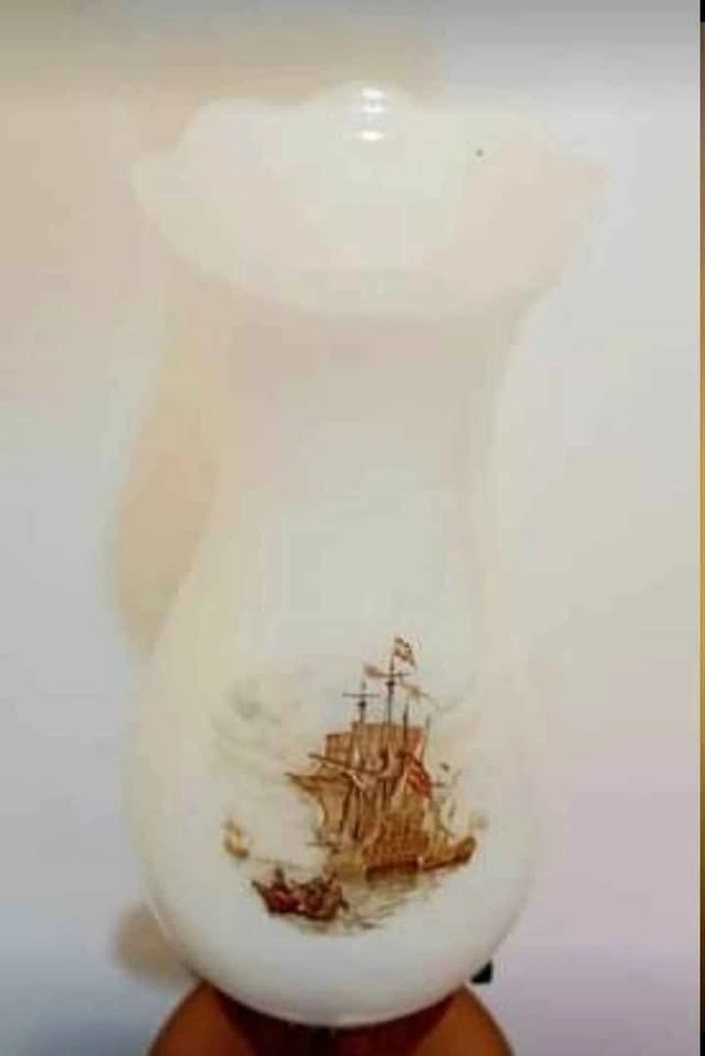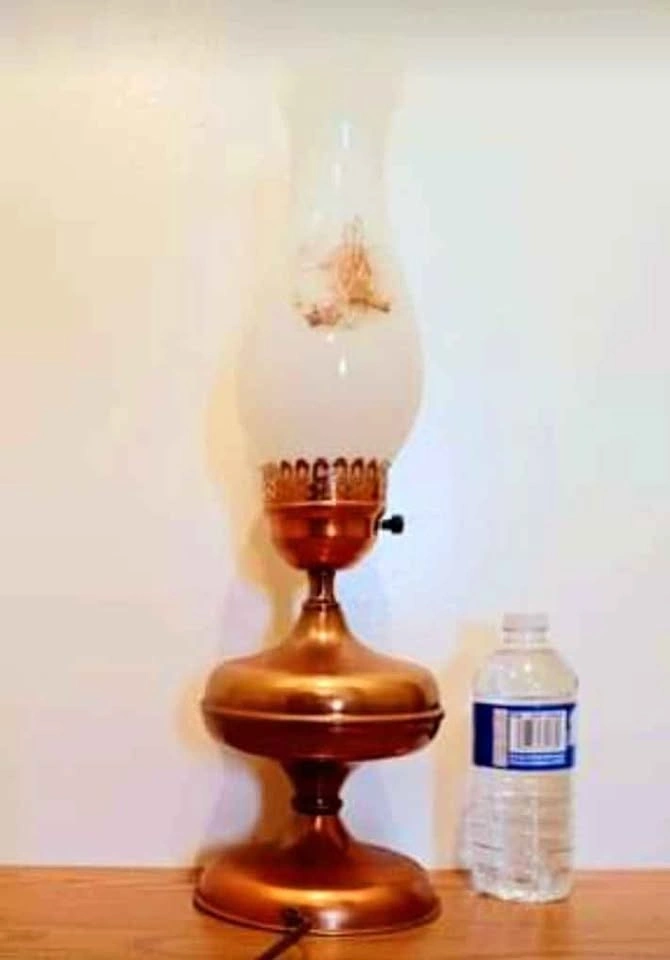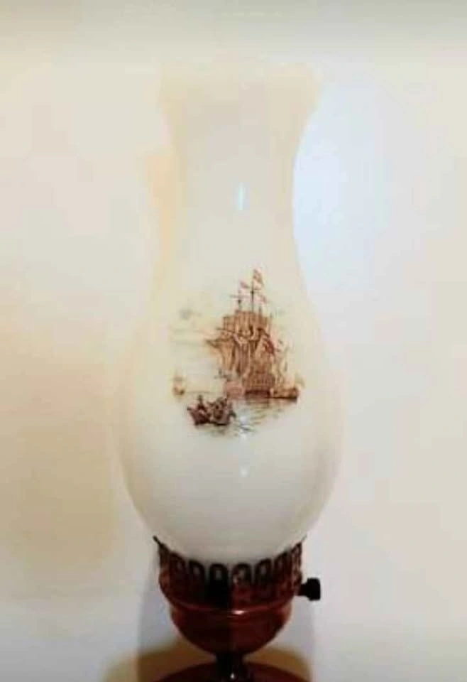 Very Rare, 1930s Stunning Italian Tall Lamp. Copper & Fluted Opaline Chimney. Nautical Decor, Ships and Boats. Decorative, Household. Excellent Condition. Please check out my other unique items!
