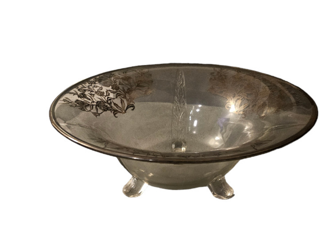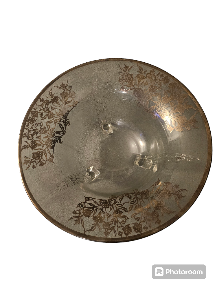 Glass ornate bowl with gold-coloured detailing. I don't know much about its origin, but it is very old.