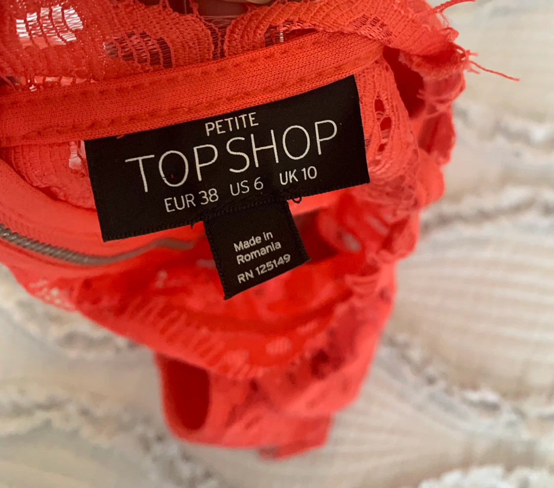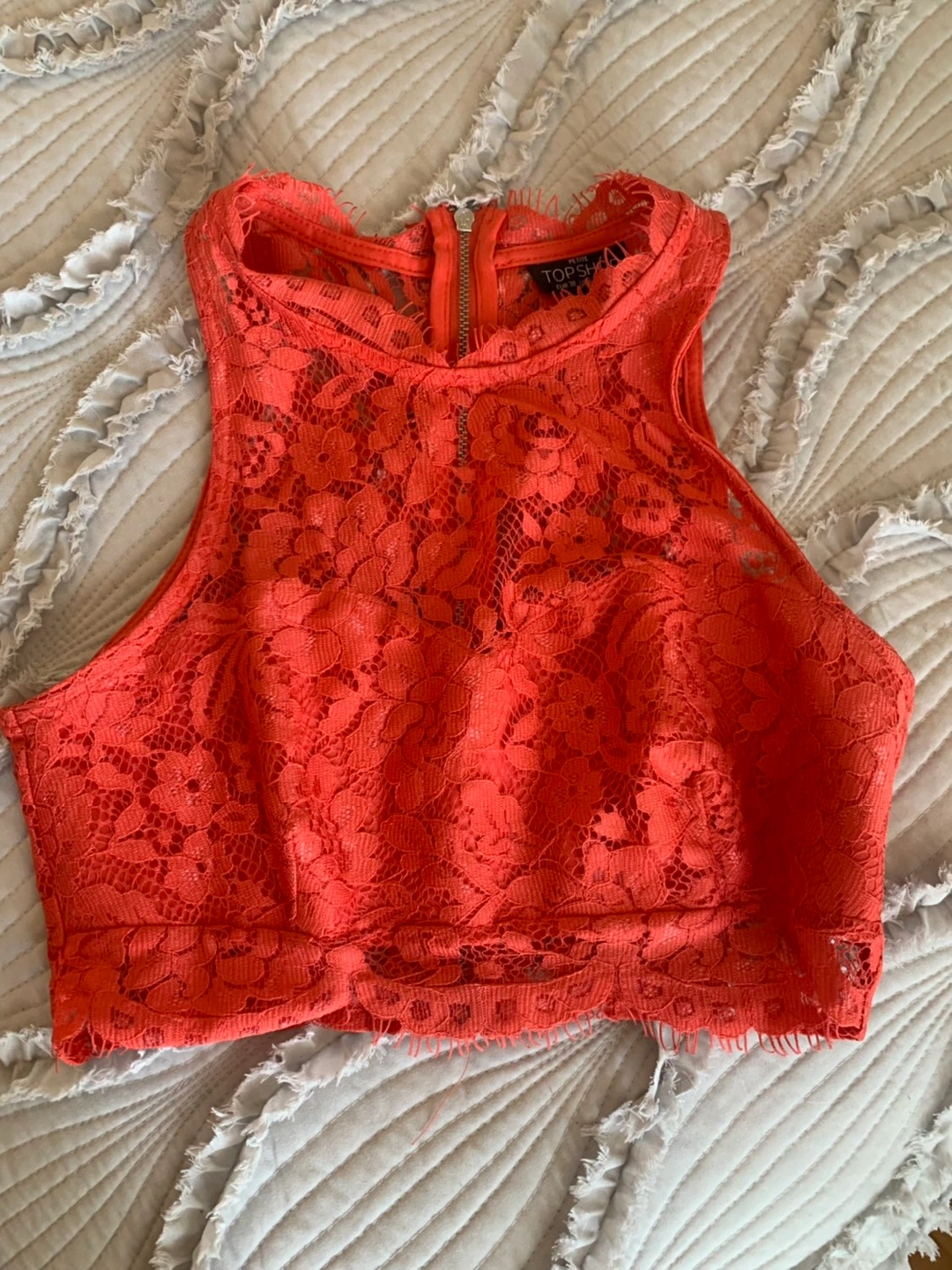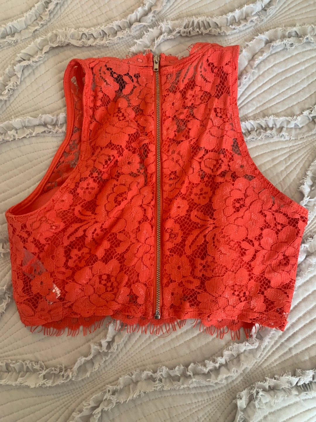 Coral lace crop top w zipper on back. Beautiful colour. Worn once! Great condition! Smoke and pet free home