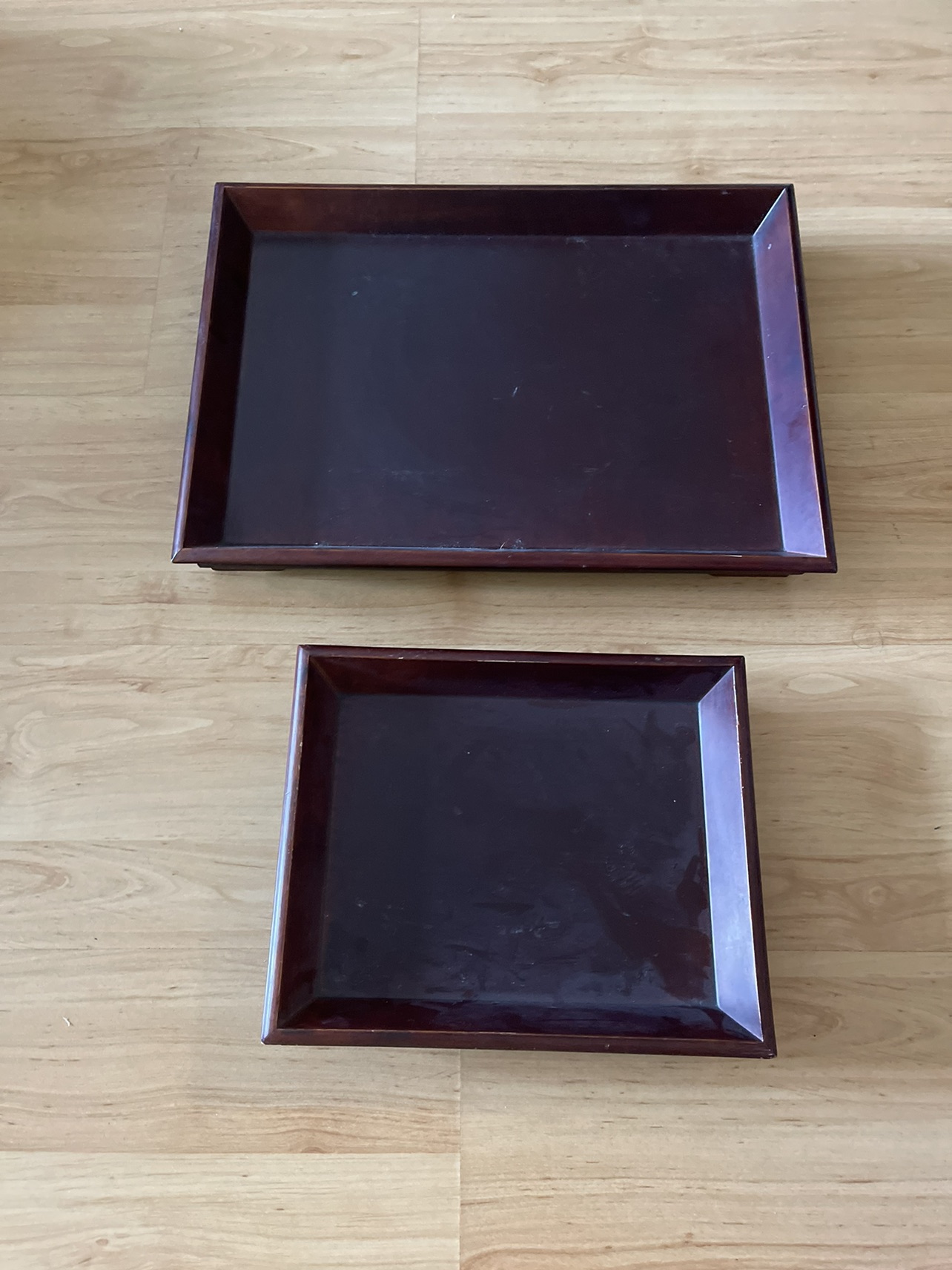 2 dark wood trays