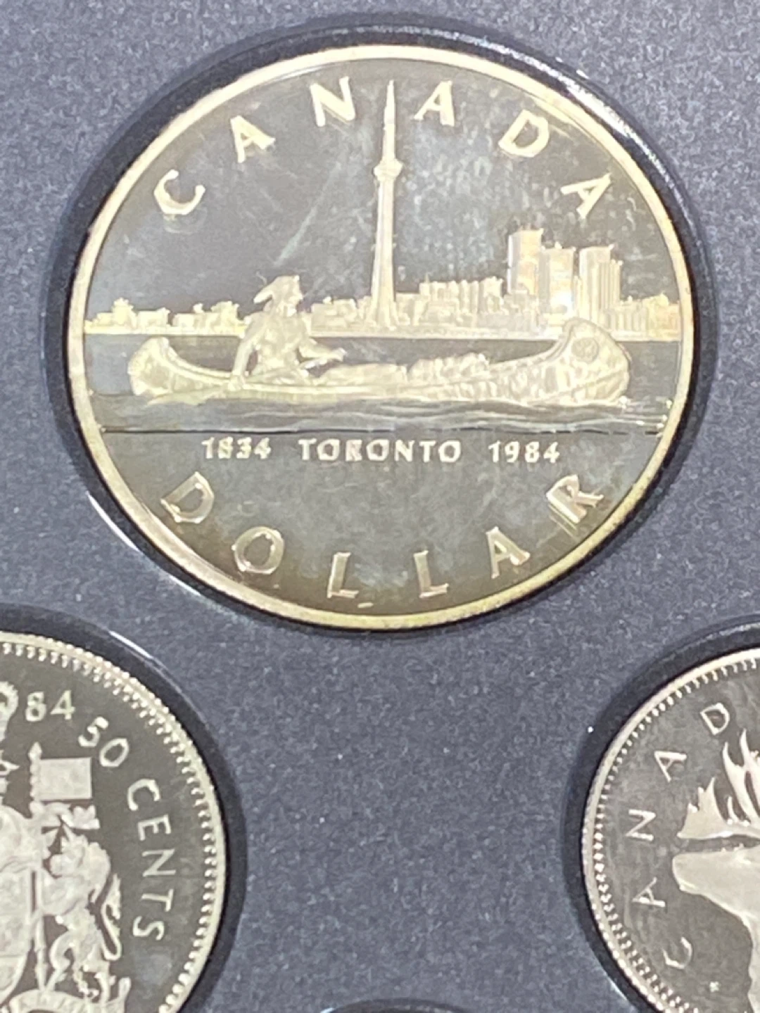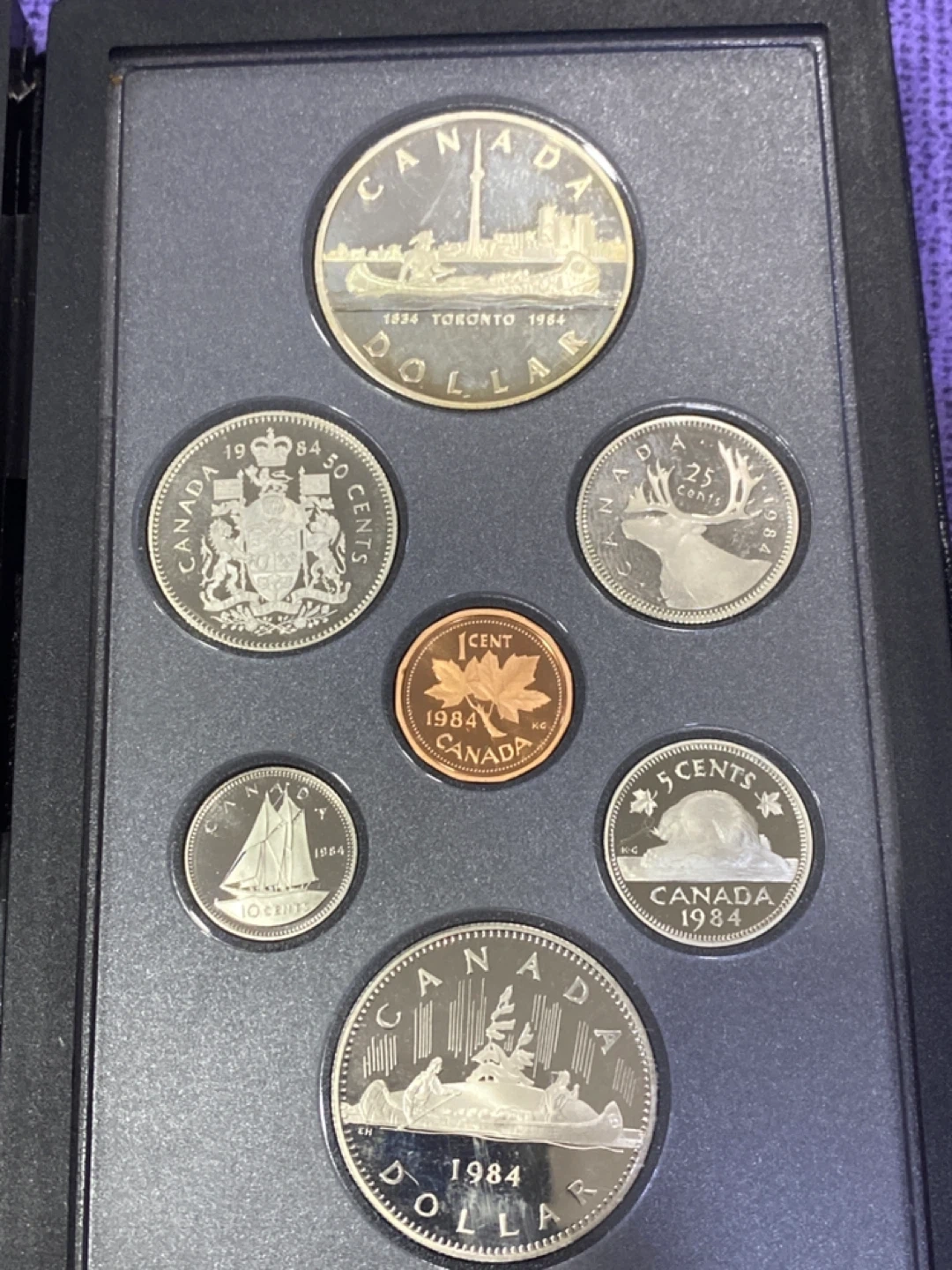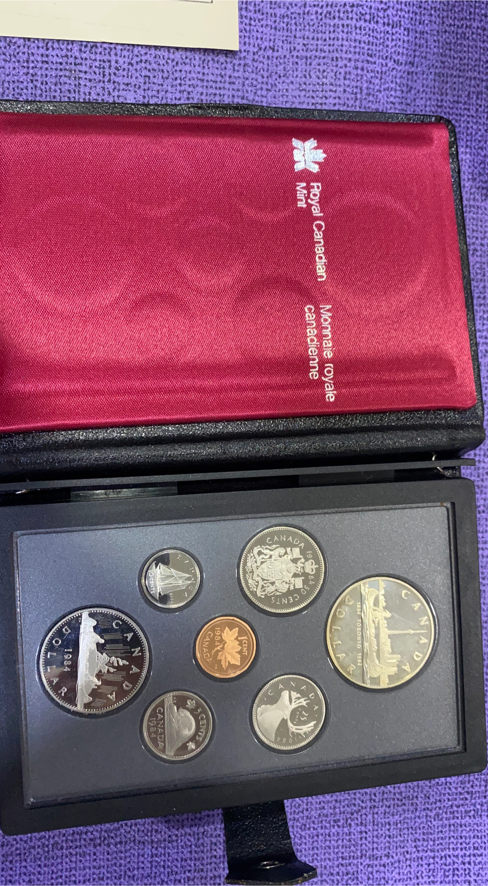 Selling a 1984 Royal Canadian Mint coin set. It includes various denominations from that year, all housed in a presentation case. A great addition for any coin collector!